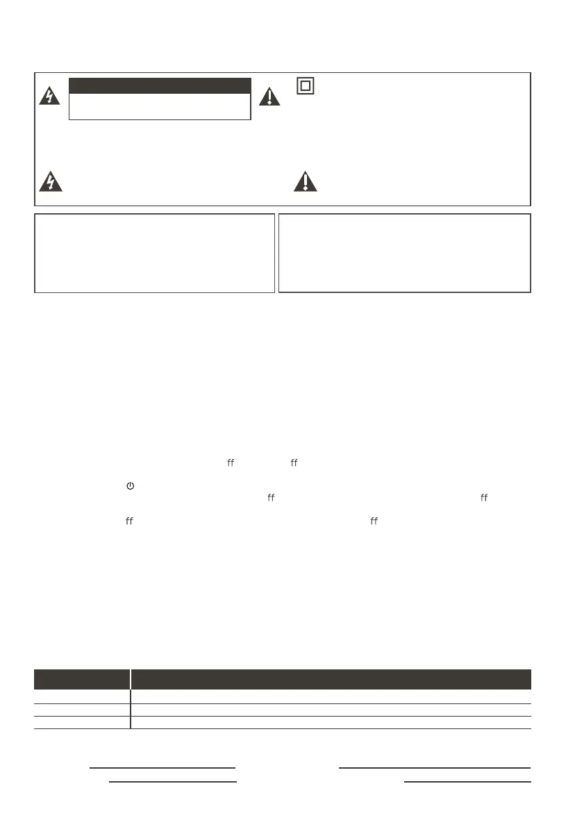 Caution: To reduce the risk of electric shock, do not remove cover (or back). No user serviceable parts inside.