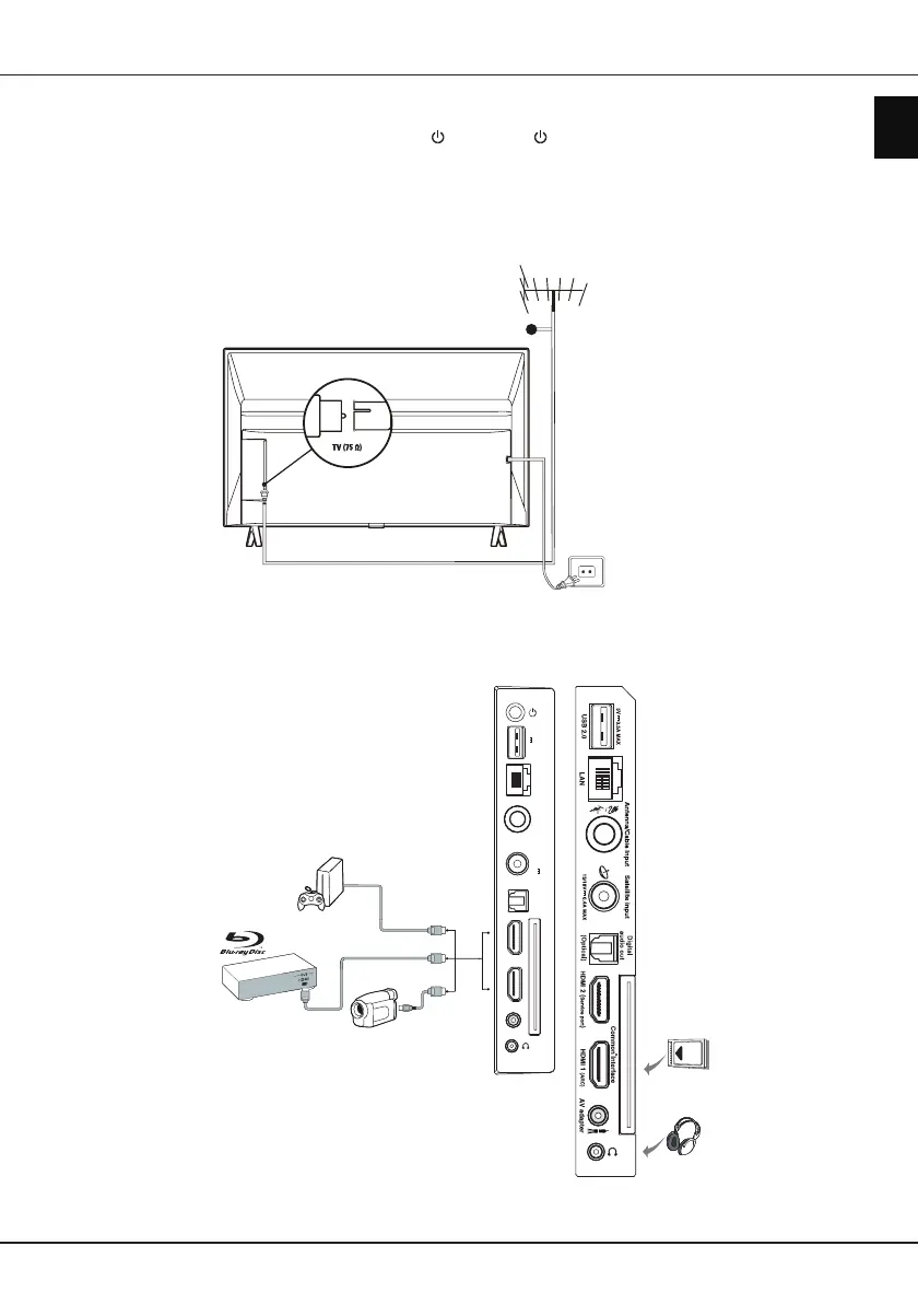 To switch on TV after connecting power cord, press or