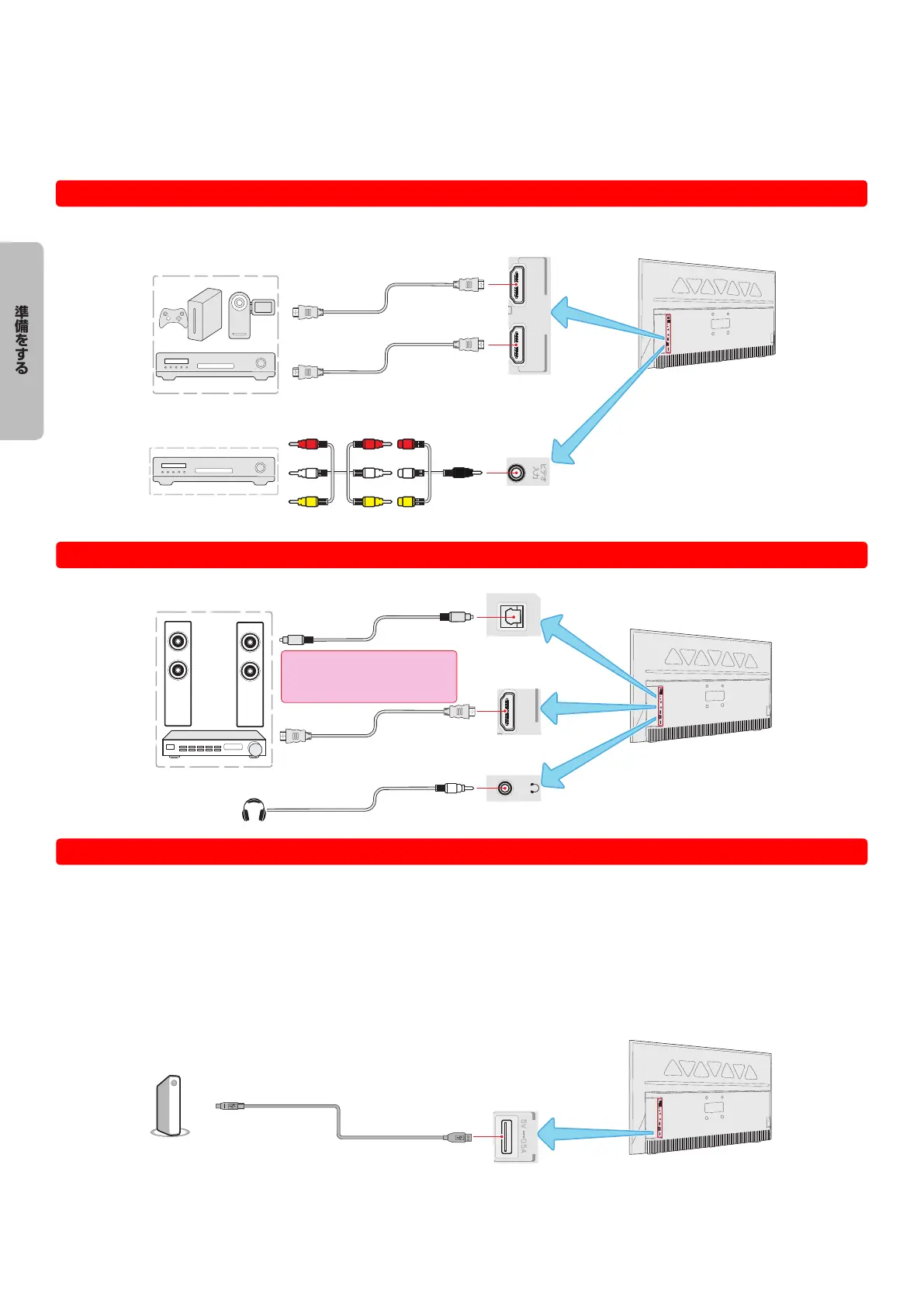 ●● 他の機器を接続するときは、必ず本機および接続する機器の電源を切り、電源プラグをコンセントから抜いてください。
