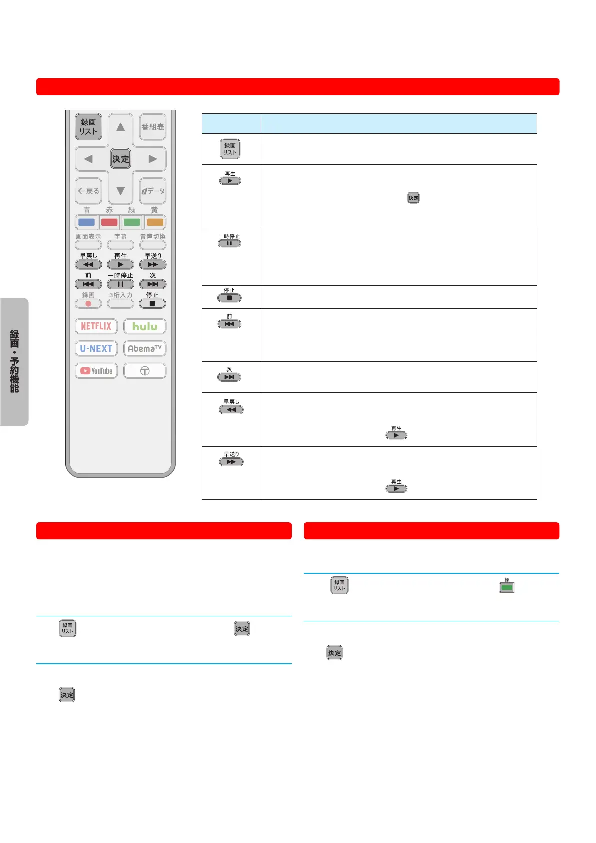 ● 再生中またはテレビ番組の視聴中に押すと、録画リストが