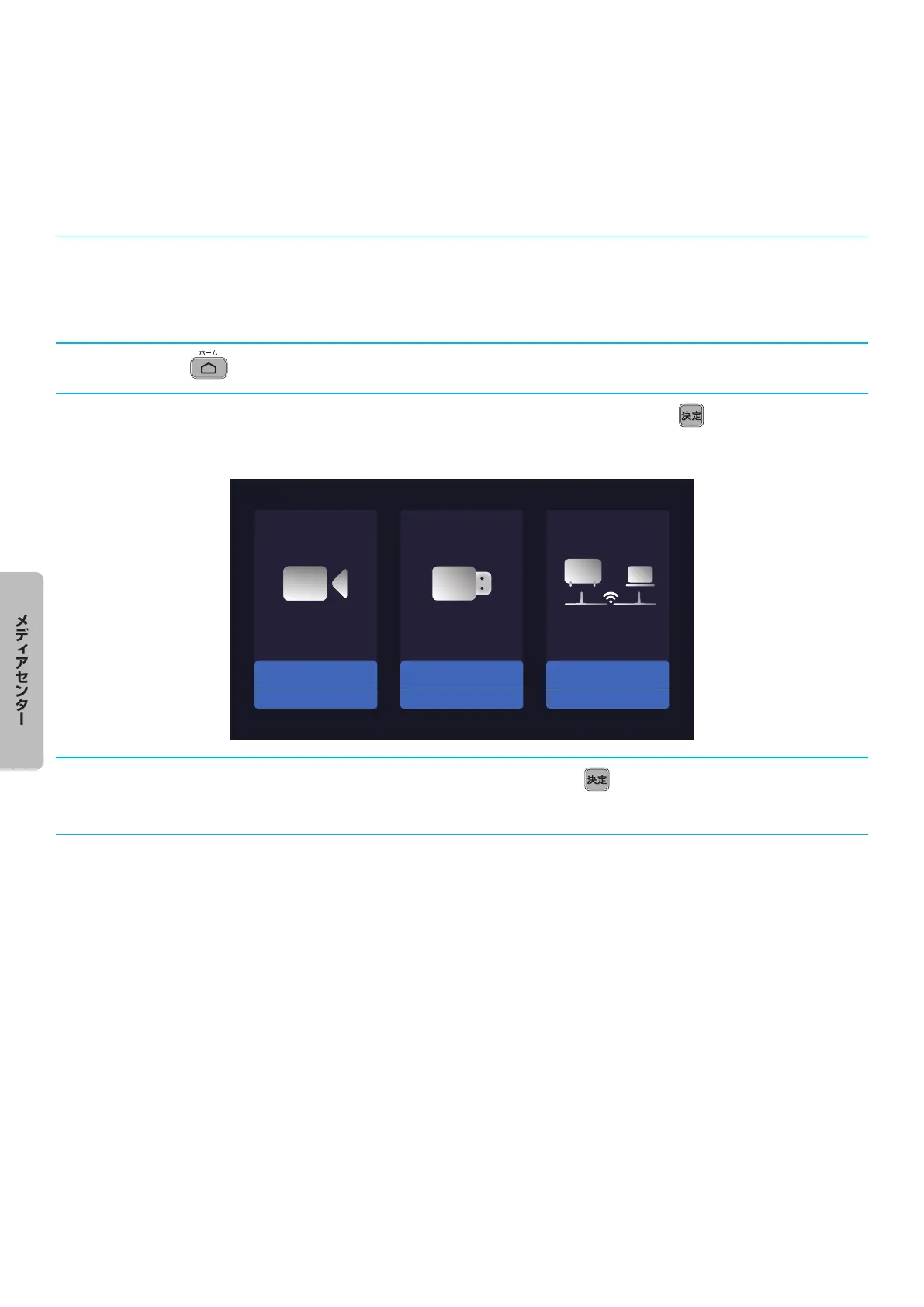 ▲.·.▼.·.◀.·.▶を押して MediaCenter(メディアセンター)を選び、 を押す。