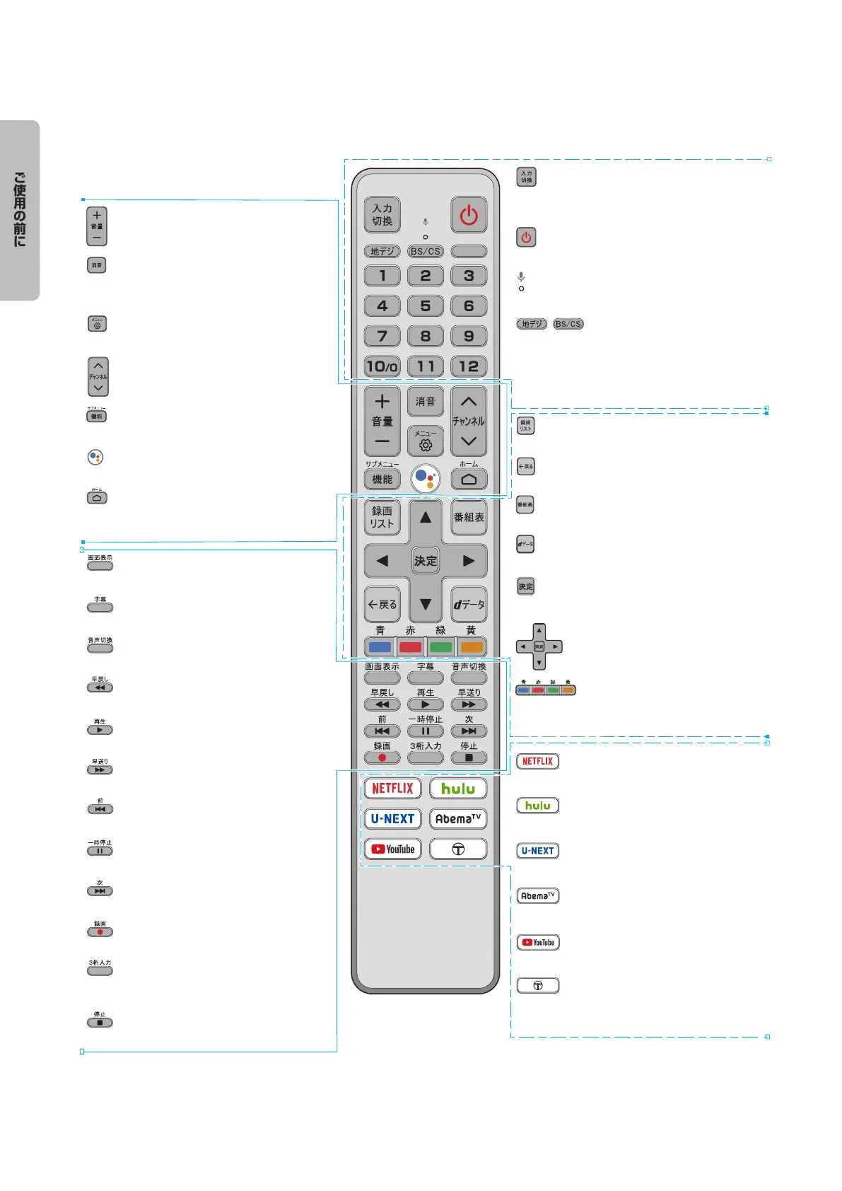 ●● リモコンは、テレビに附属の専用リモコンのみを使用してください。●専用リモコン以外では、外観が類似していたとしても、
