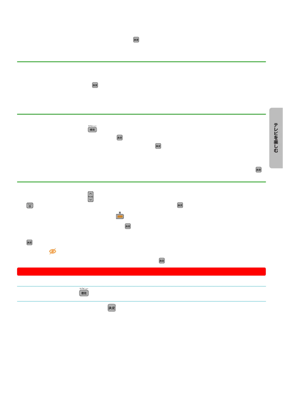 ●● 番組と番組の間に表示されていない短時間番組があるときは青い線が表示されます。▲・▼・◀・▶で青い線を選び、● を