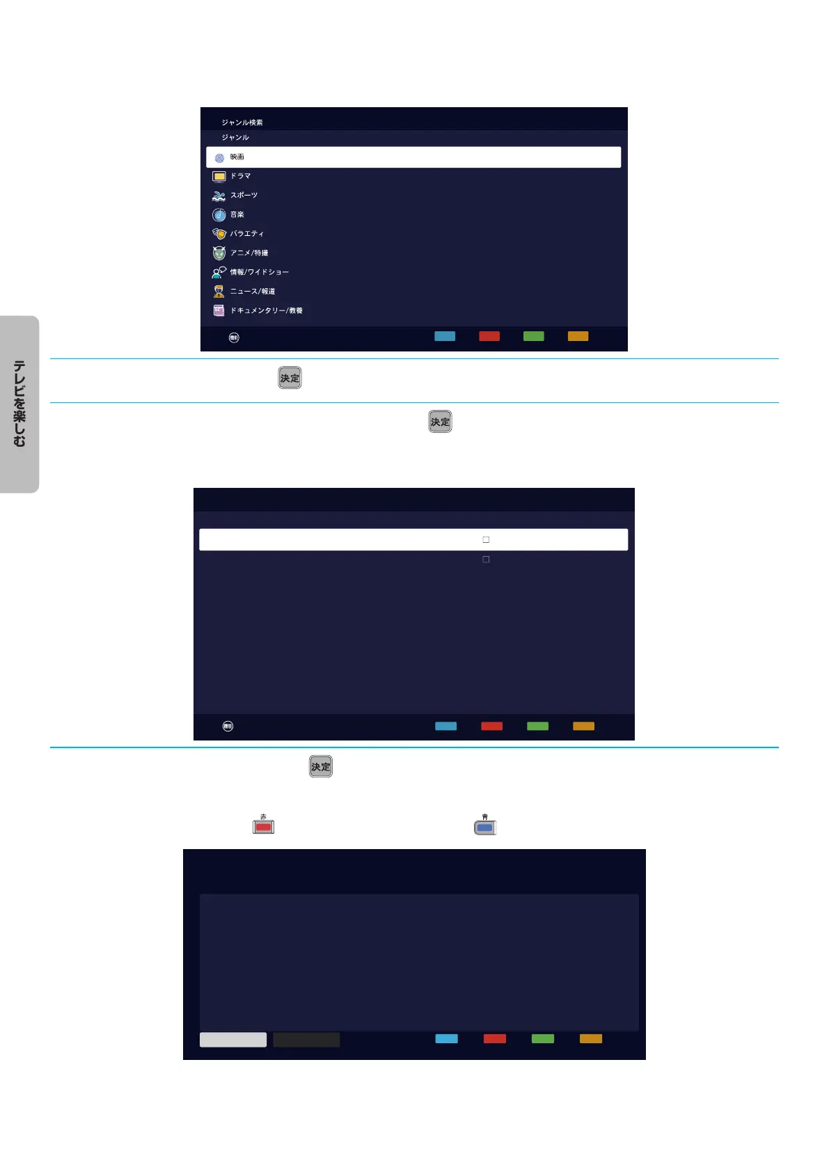 ▲ · ▼ · ◀ · ▶.で番組を選び、 を押す。