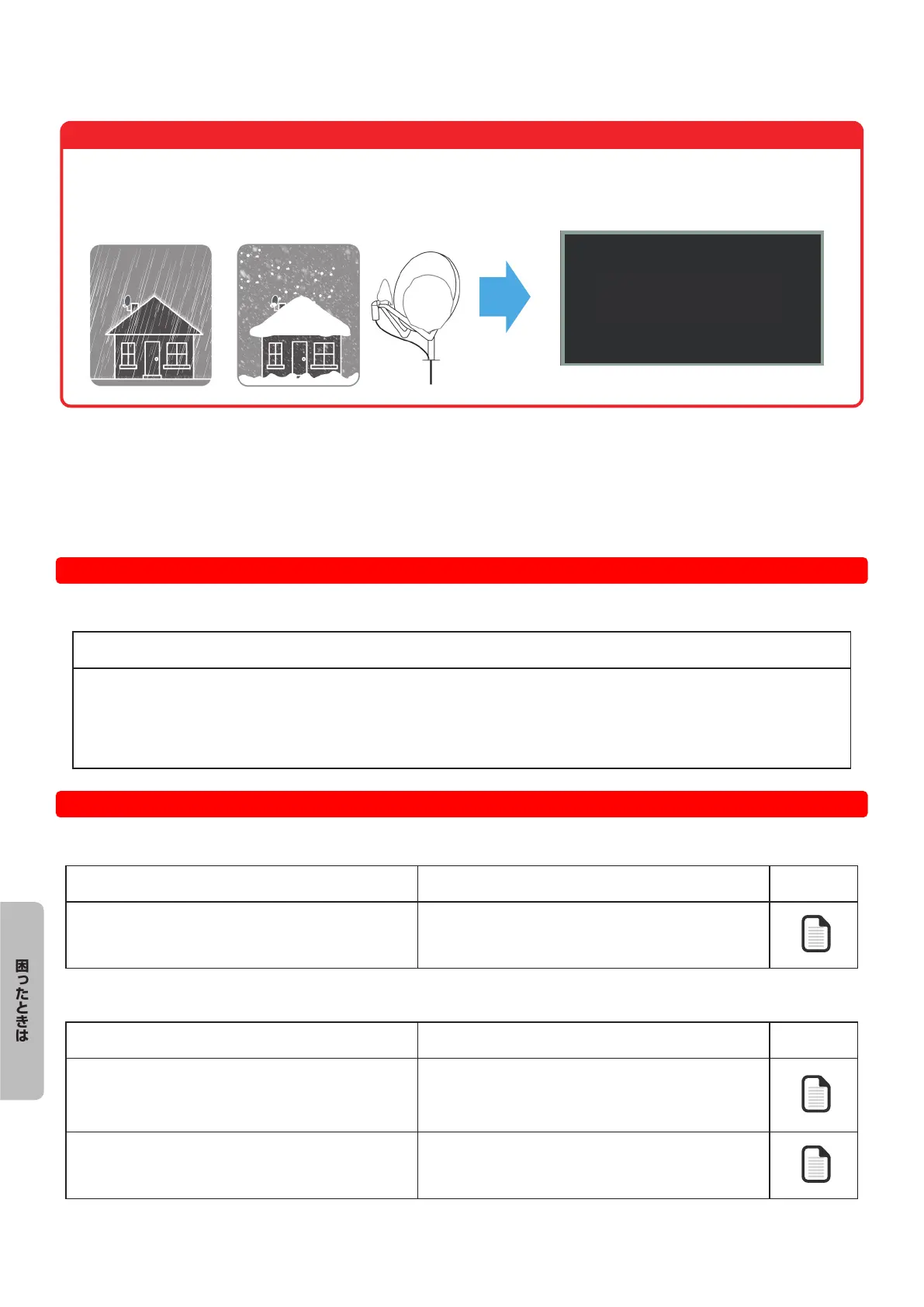 ● 雨や雪の影響で電波が弱いとき、映像にノイズが入ったり、映像が見られない原因となります。