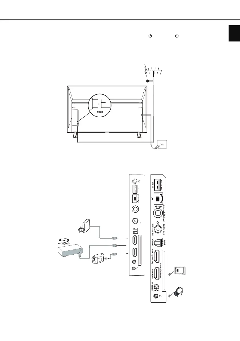 Om na het aansluiten van het netsnoer de TV in te schakelen, druk op of