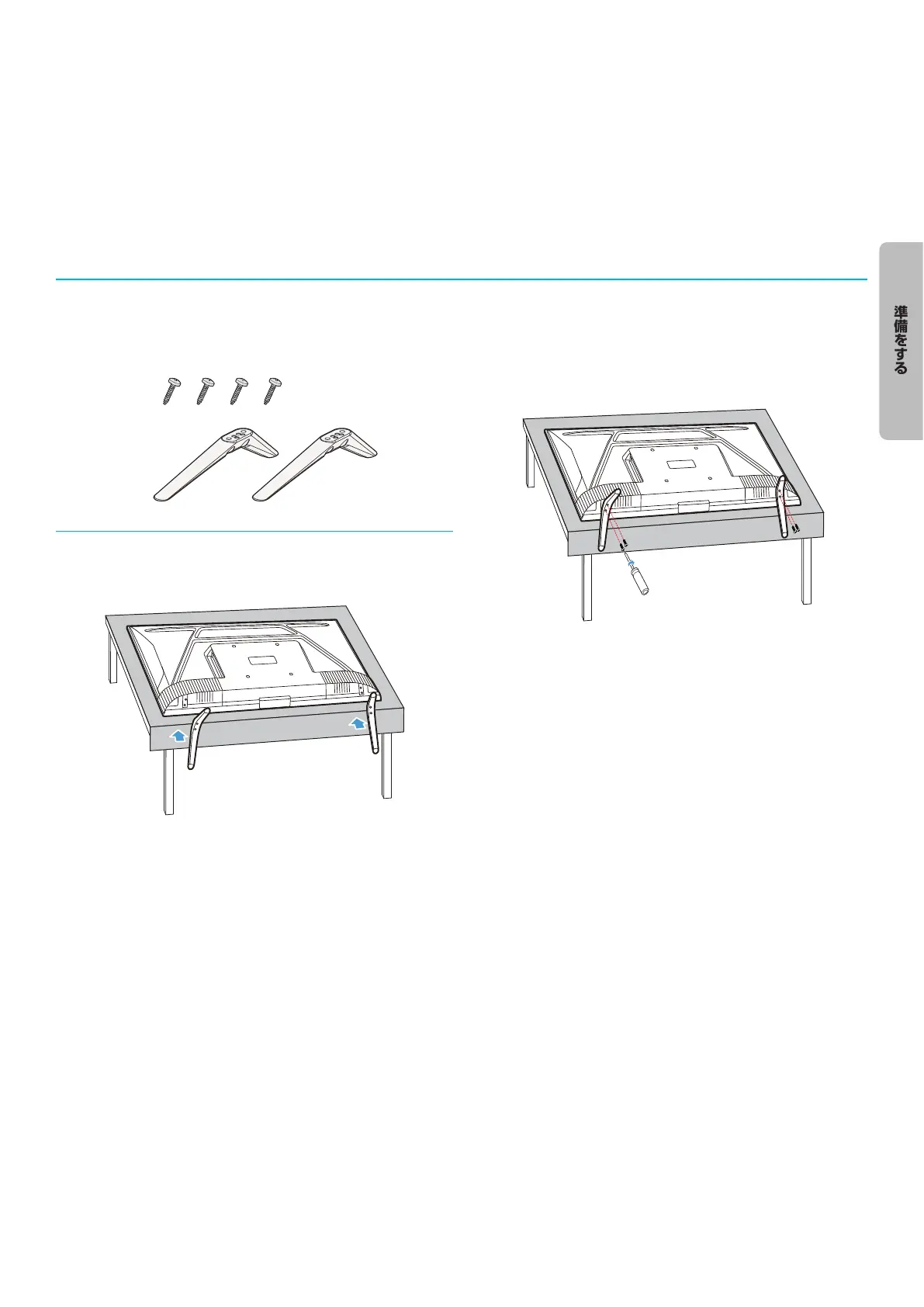 テレビ本体にスタンドを取り付ける。