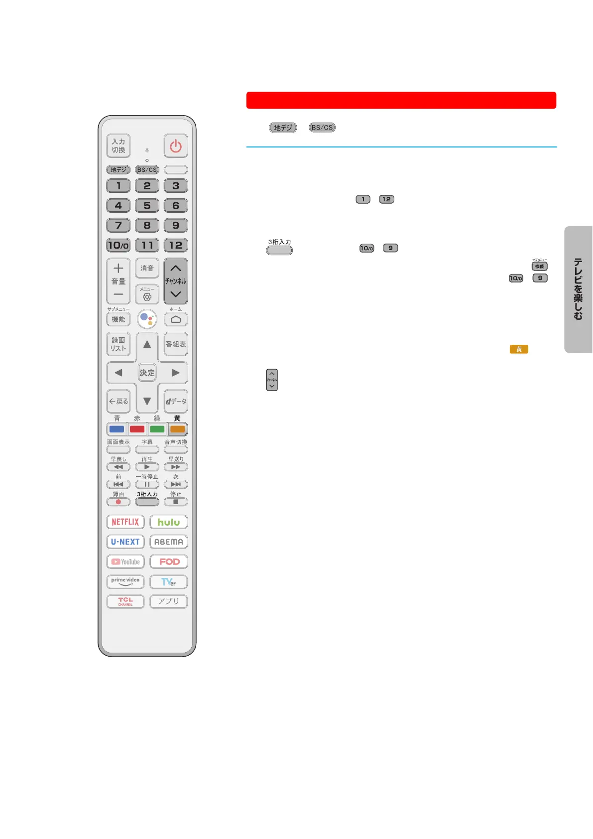 を選択します , あるい3桁のチャンネル番号で選局する場合は、 を