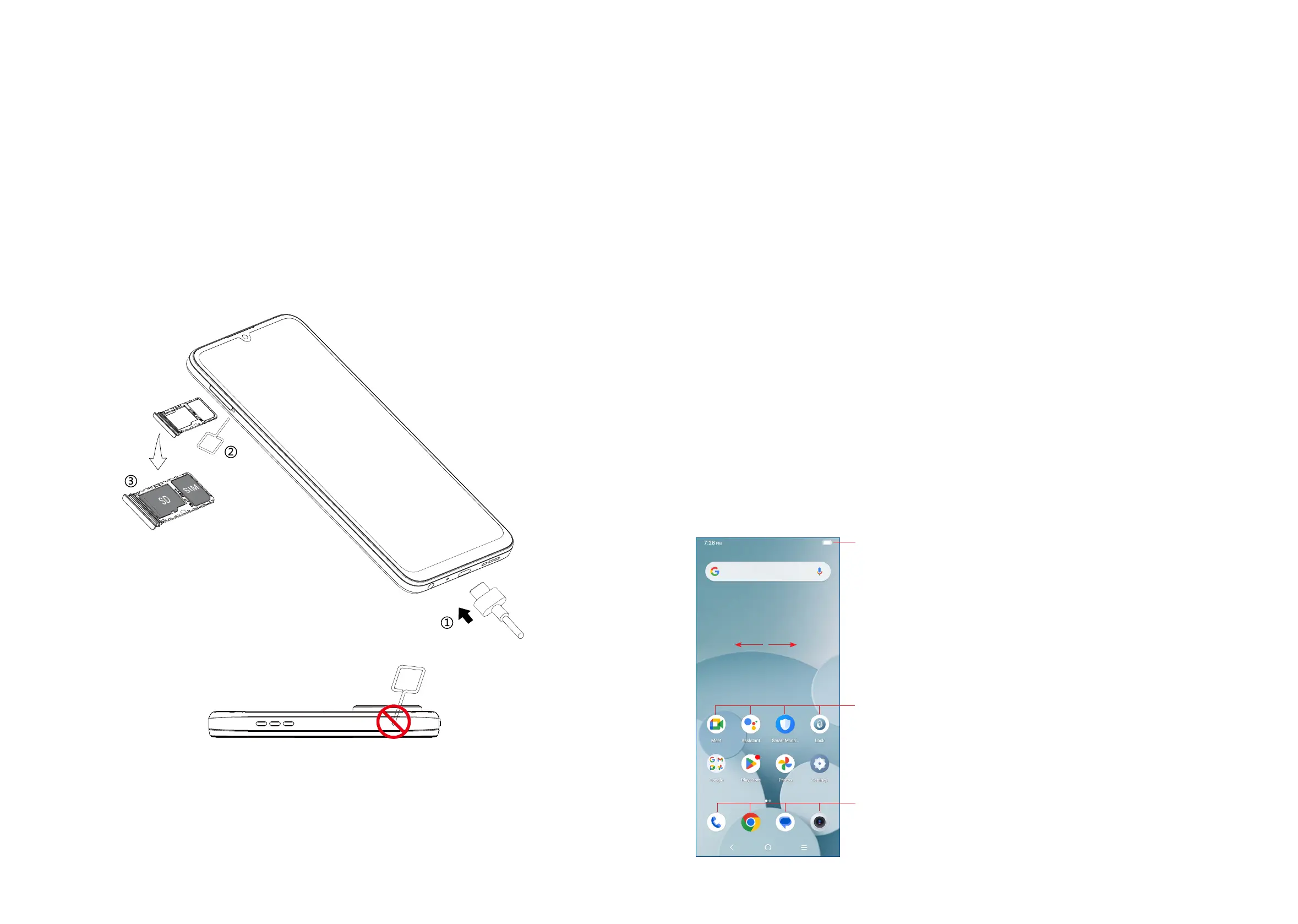 ① Your new phone is partially charged. Charge the battery by using the USB-C
