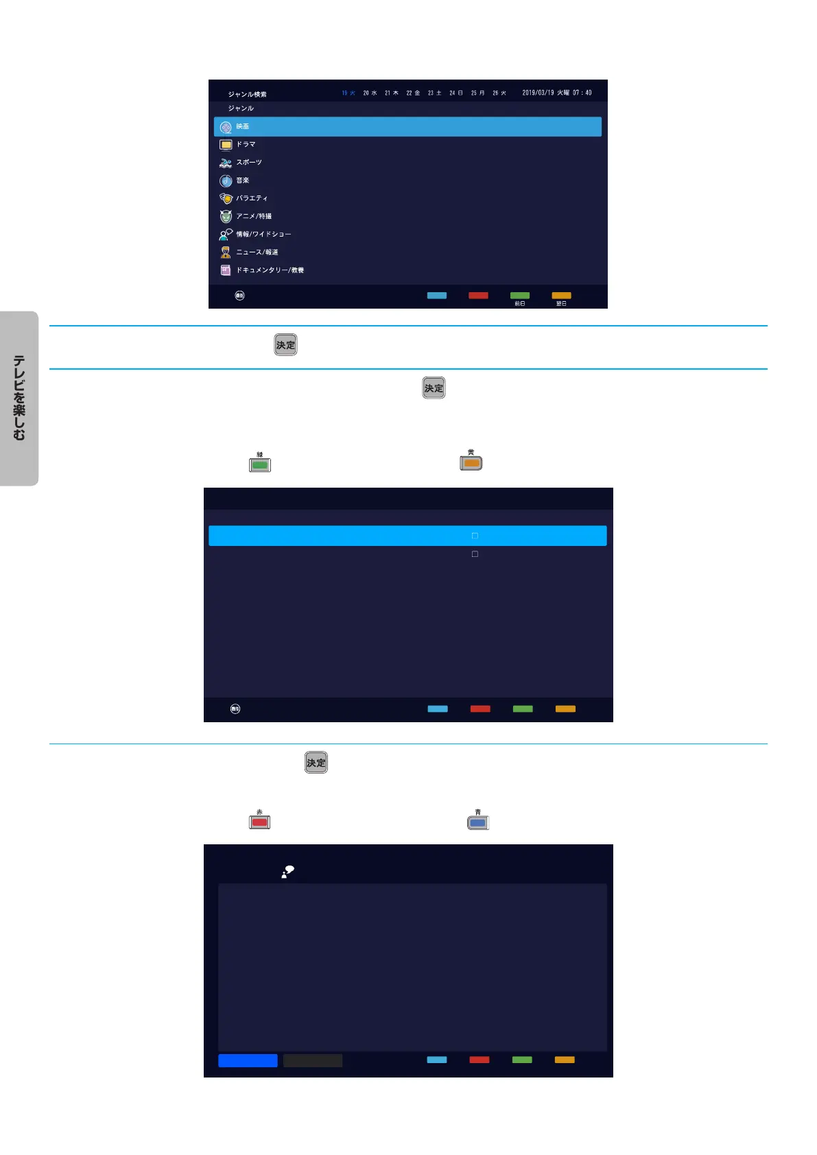 ● 前日の番組を検索するには、 を、翌日の番組を検索するには、 を押します。