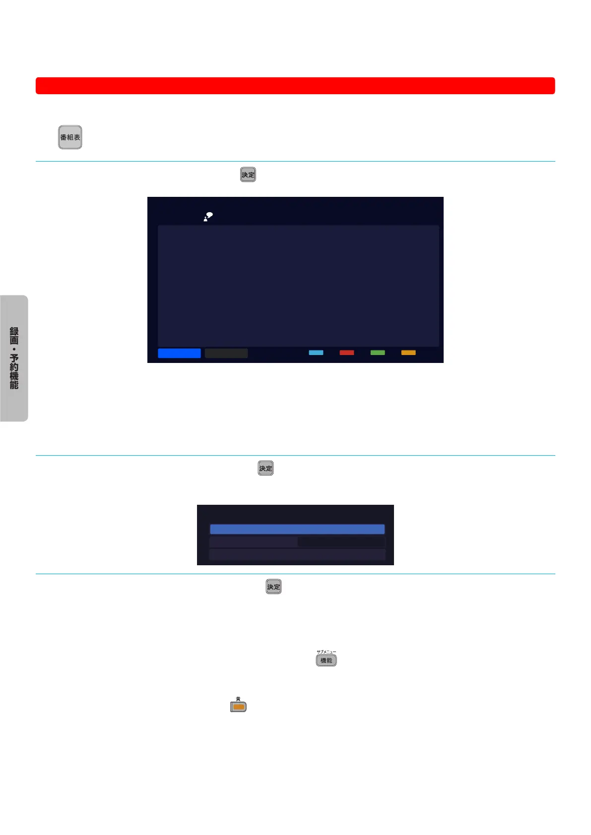 ● 視聴予約の動作は録画予約の動作と同様であり、以下では録画予約のみを説明する。