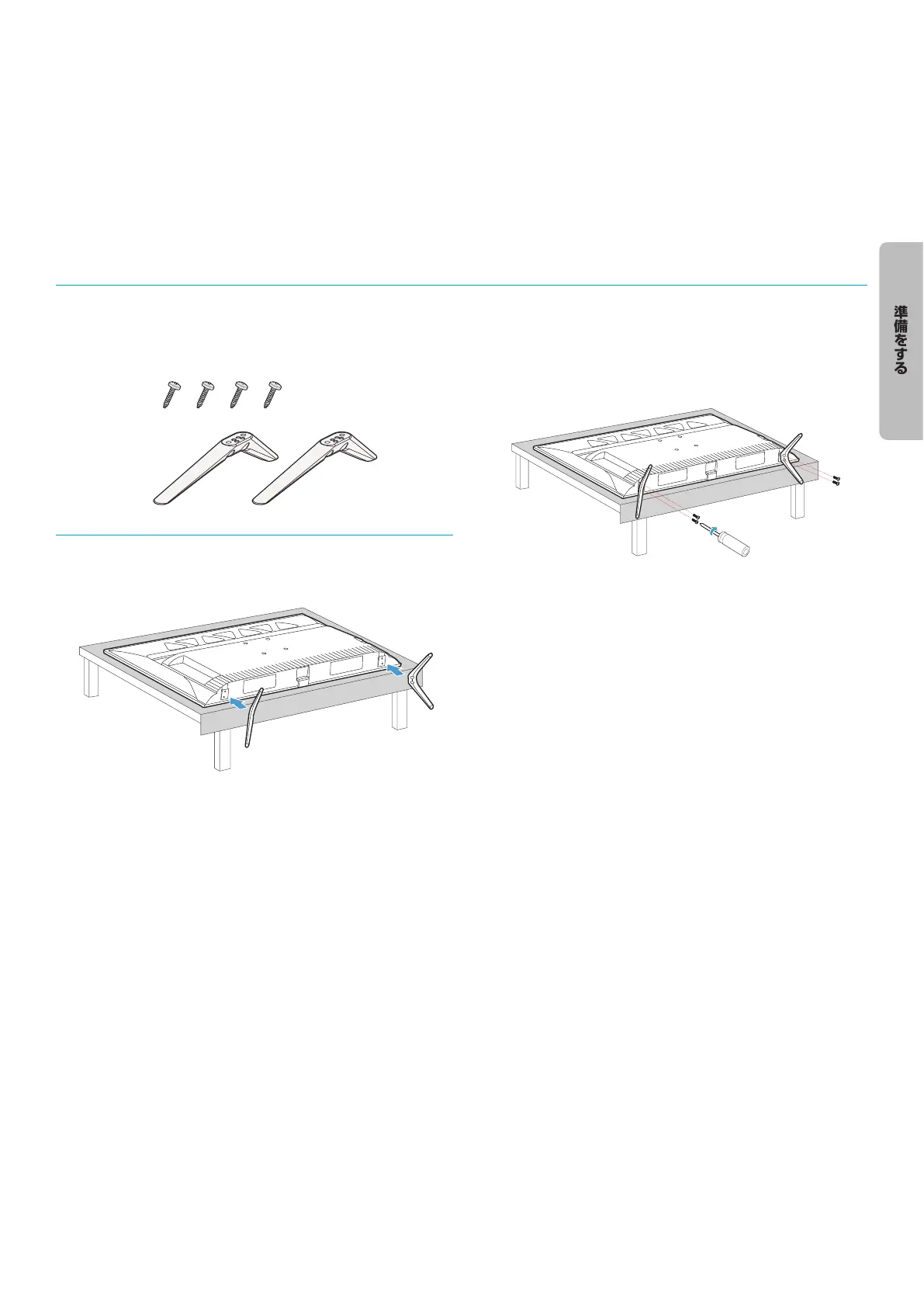 ●● 組立中に画面に傷がつかないよう、画面の下に軟らかい布などを置くようにしてください。