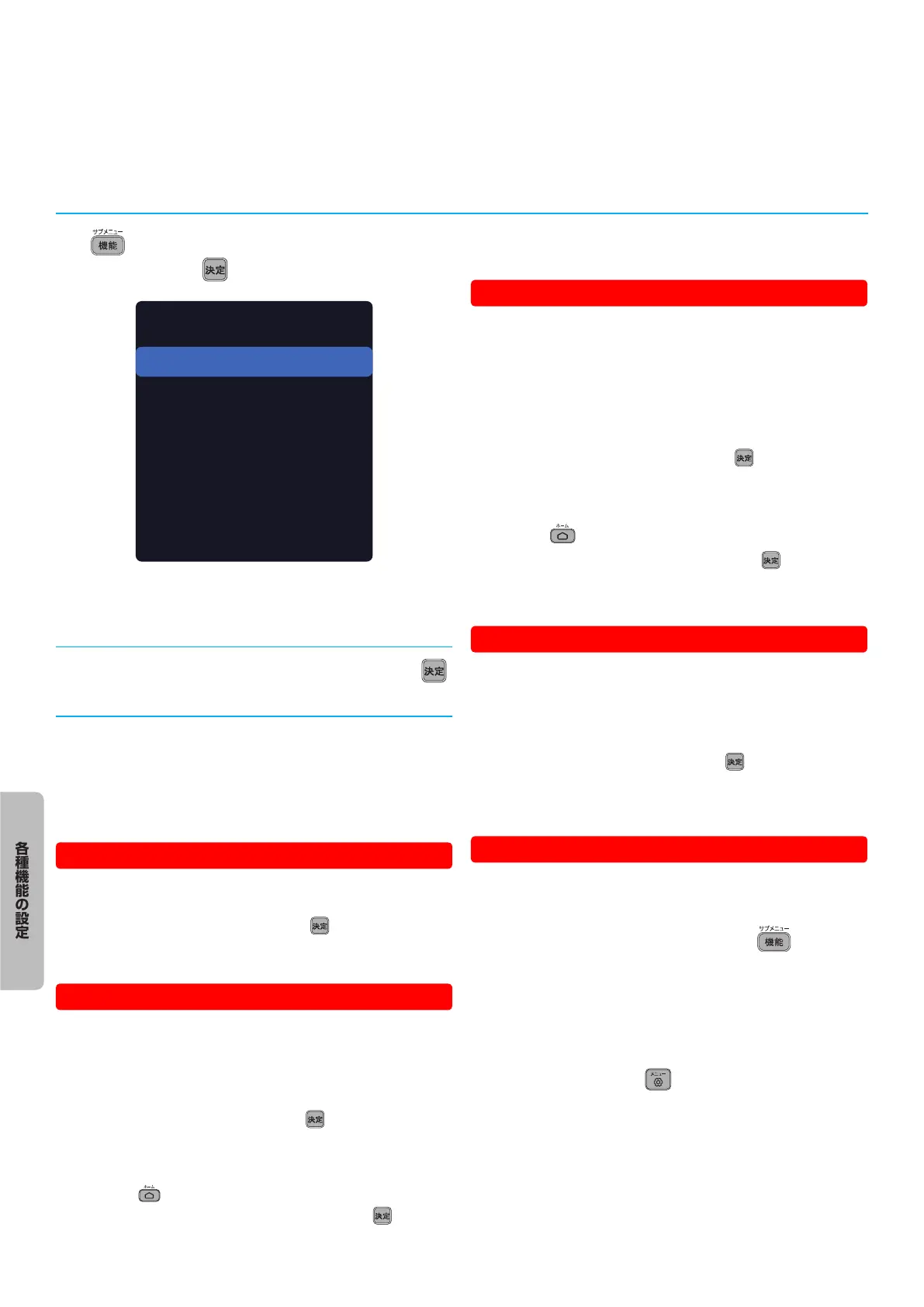 ●● テレビ視聴中およびストリーミング再生中には、「機能」