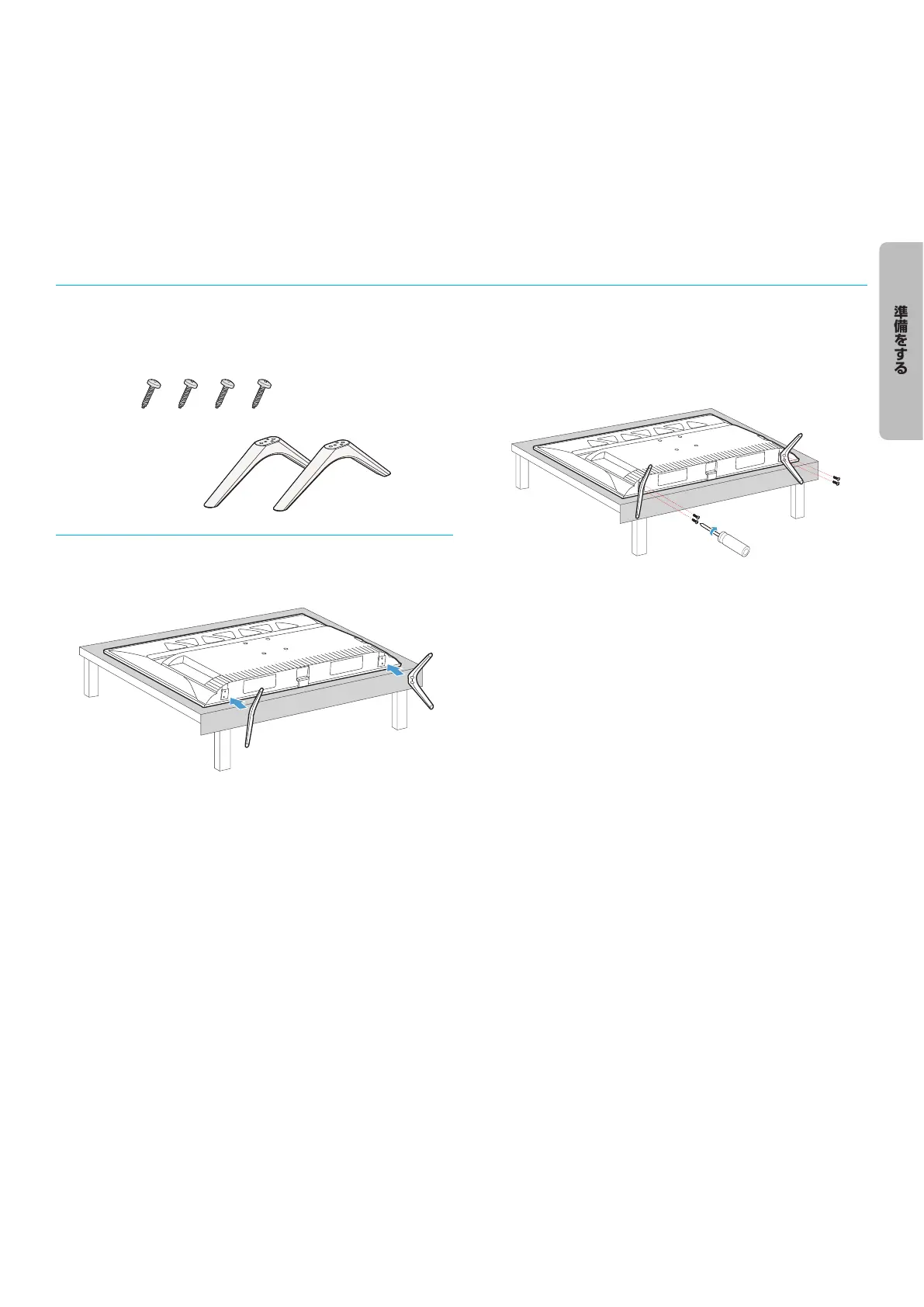 ●● 組立中に画面に傷がつかないよう、画面の下に軟らかい布などを置くようにしてください。