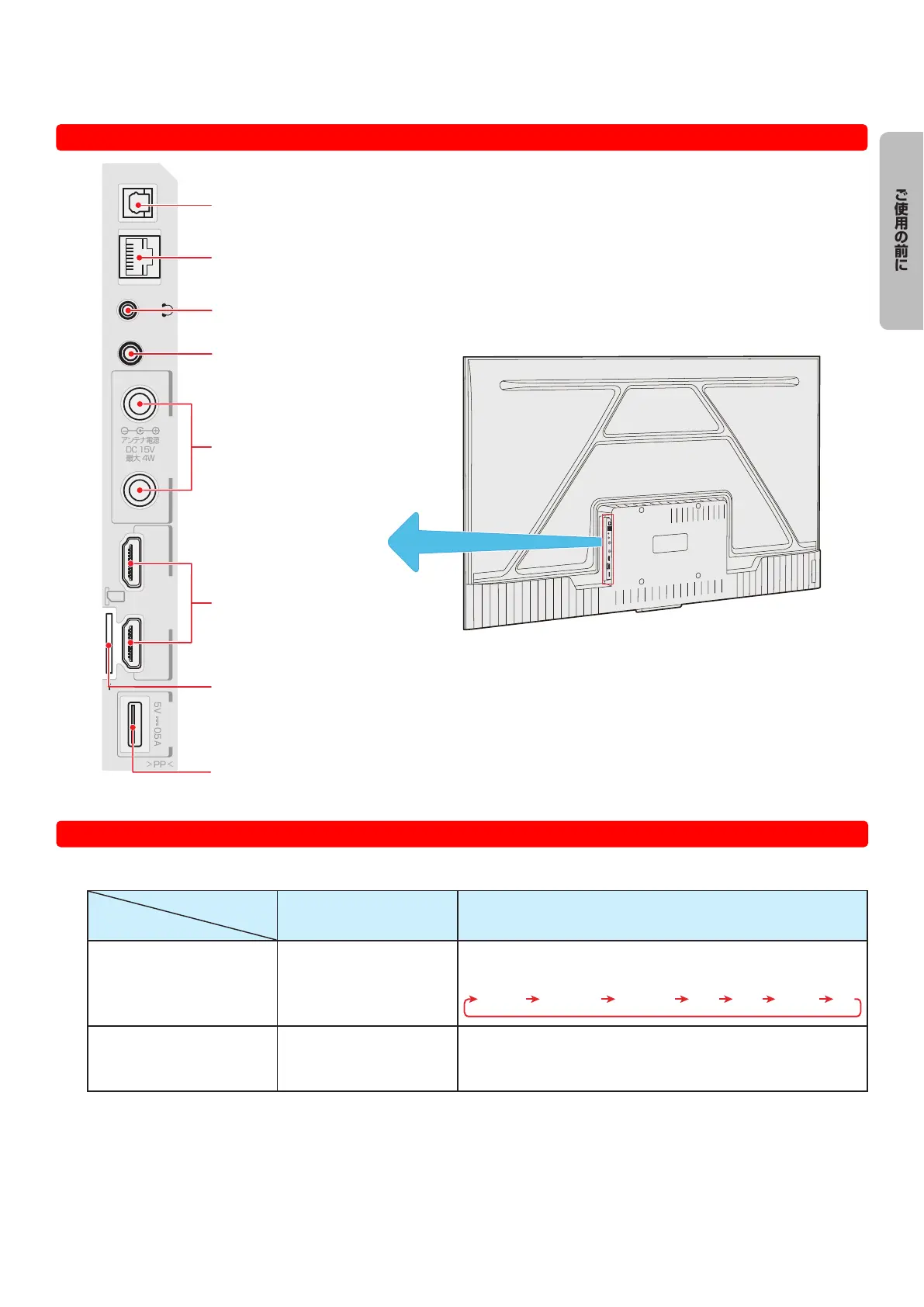 ● リモコンの電池が消耗している場合は、テレビのボタンを使用できます。以下の機能があります。