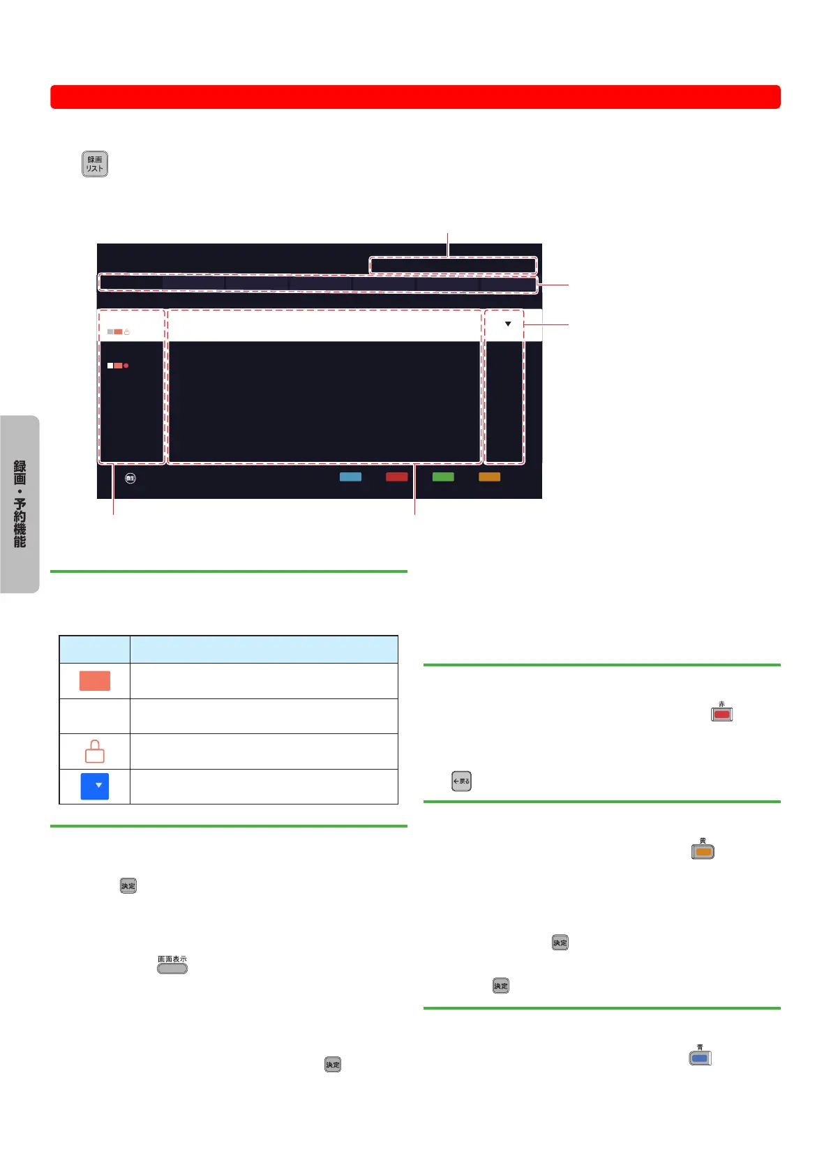 ● 録画リスト画面の番組情報アイコンは以下のとおりです。
