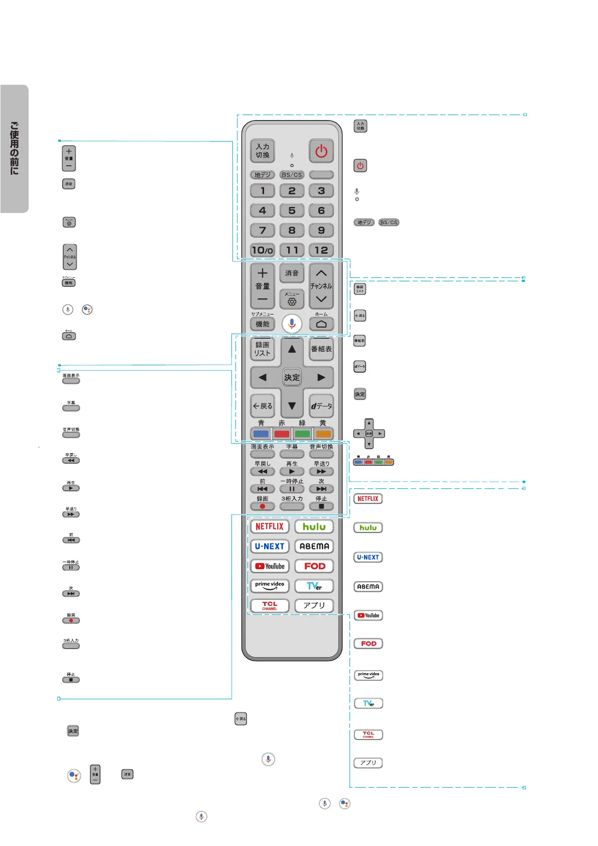 ※ テレビのリモコンのボイスボタンには 2 つの状態がありますが( と )、機能と操作方法は同じであり、使用に影響は