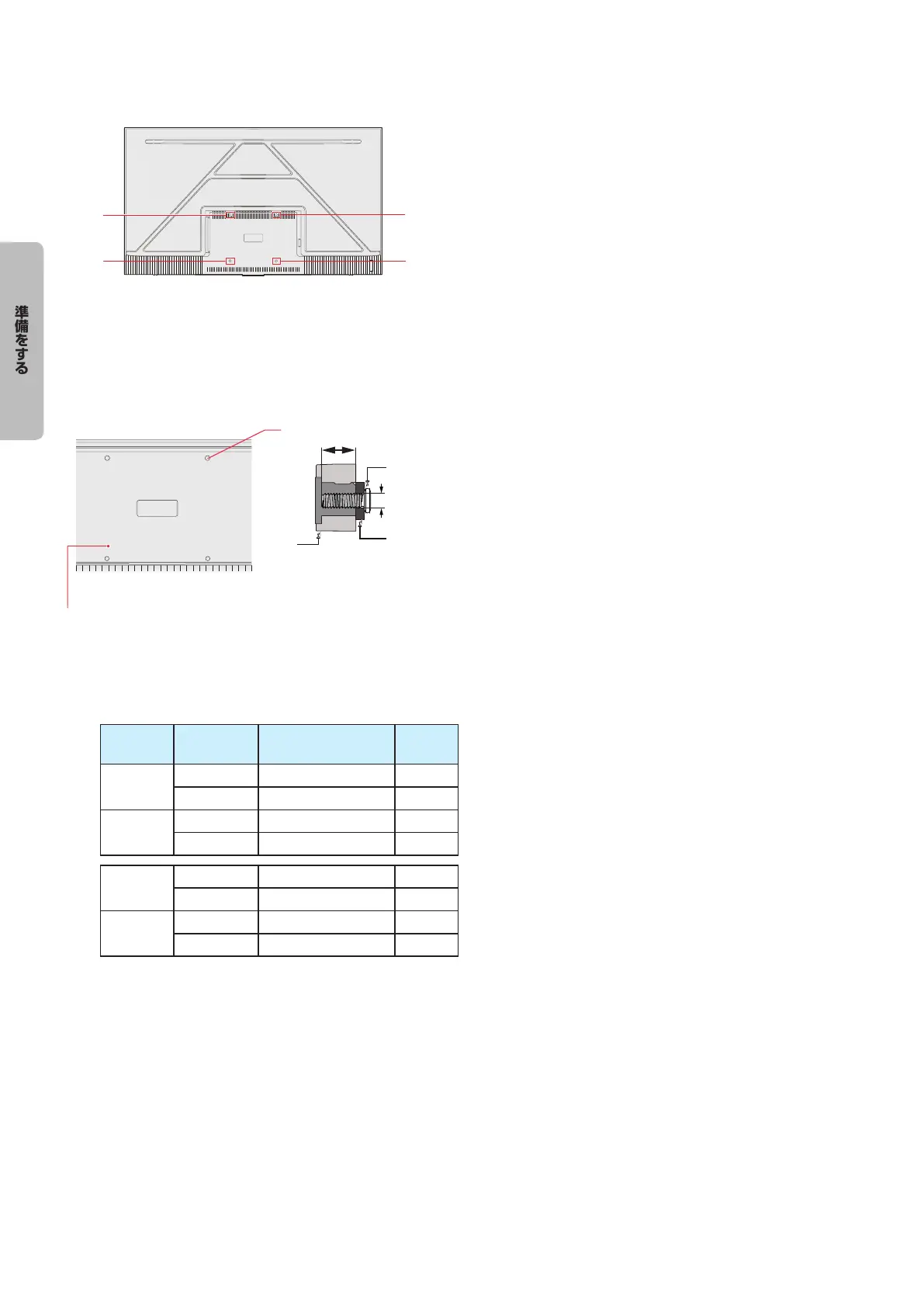 ●● 壁掛け用ネジの実際の長さは、壁掛け金具の厚さにより変