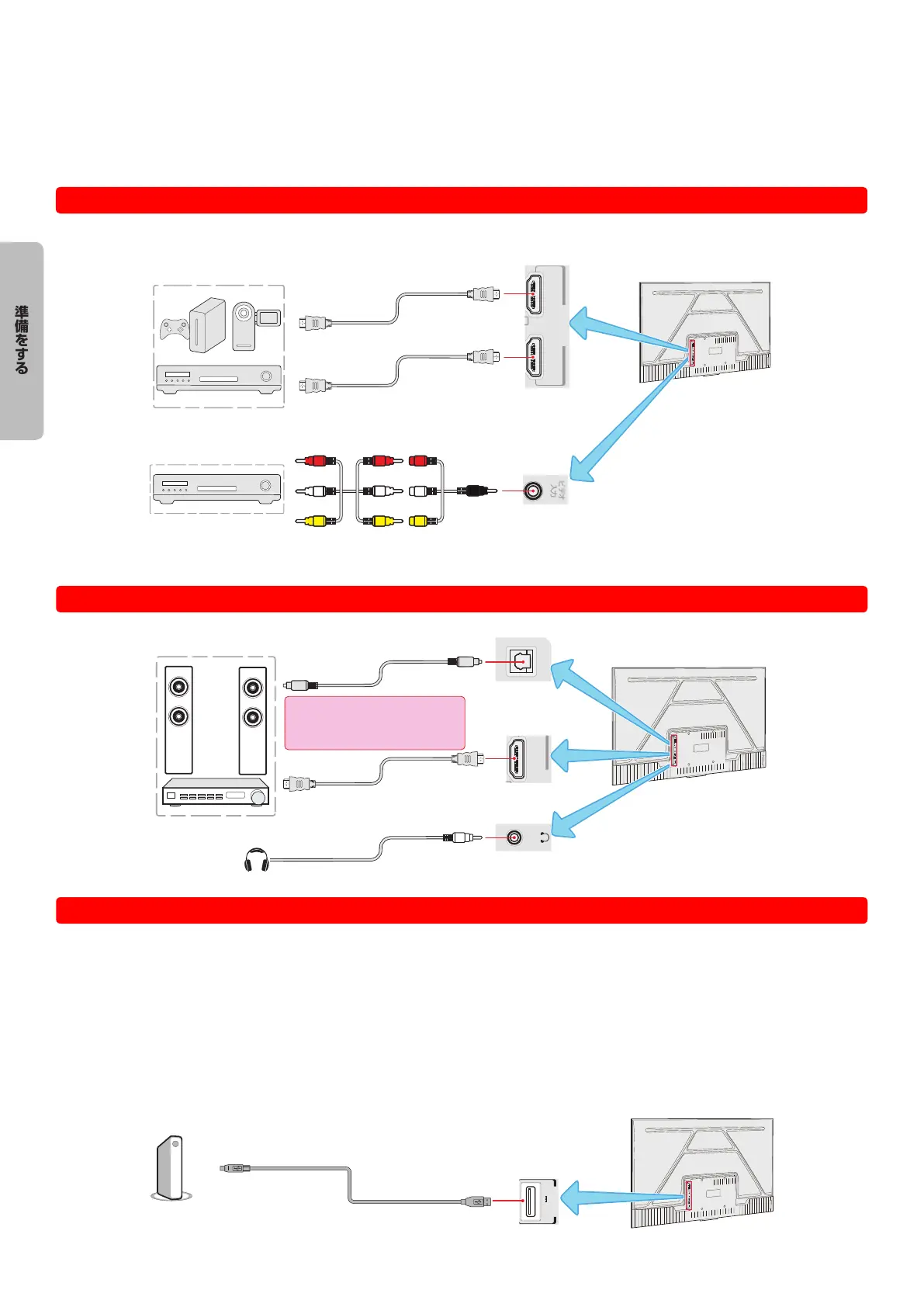 ●● 他の機器を接続するときは、必ず本機および接続する機器の電源を切り、電源プラグをコンセントから抜いてください。