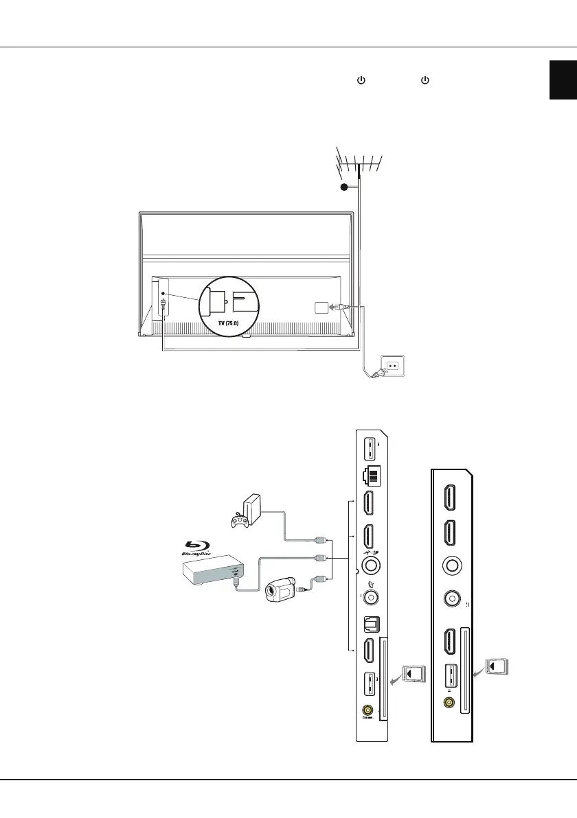 Om na het aansluiten van het netsnoer de TV in te schakelen, druk op of