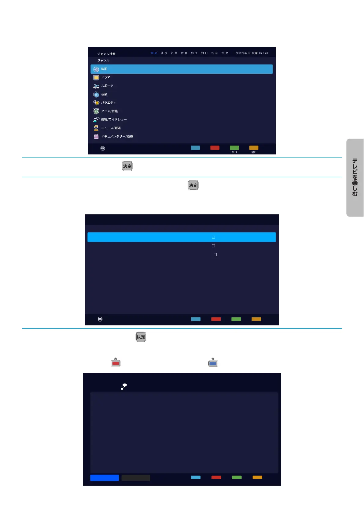 ● 指定されたジャンルの番組が、現在番組表で表示されている全ての放送 ( 地上 /BS/CS/4K) の番組を対象に検索され、