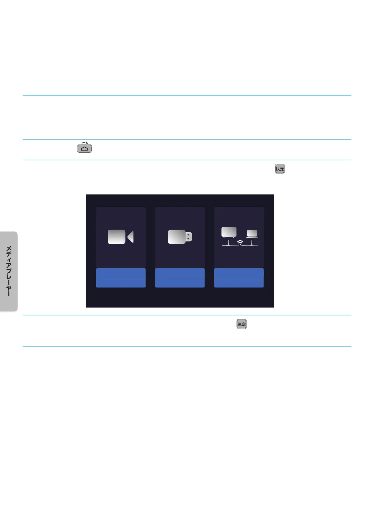 ● メディアプレーヤーを使用しているときは、光デジタルオーディオ出力端子または HDMI 端子(ARC 機器への音声出力)