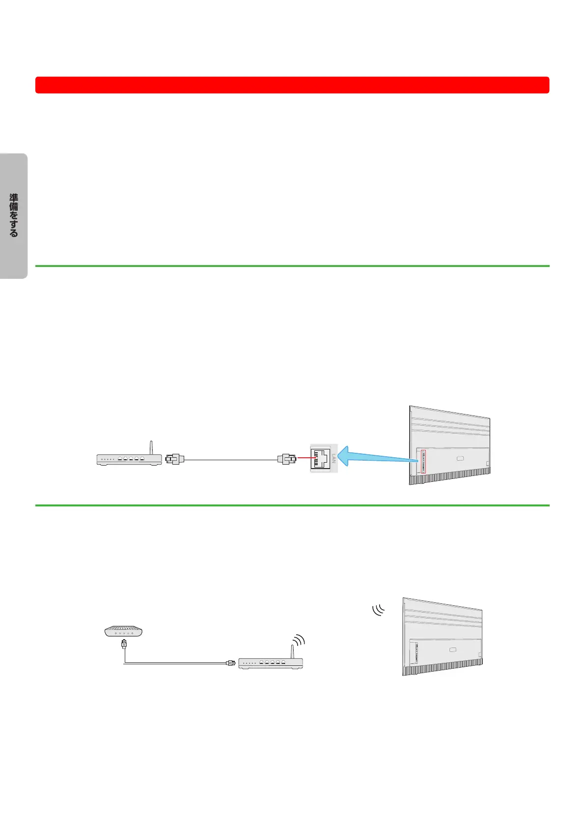 ●● テレビをインターネットに接続する方法として、有線接続と無線接続があります。