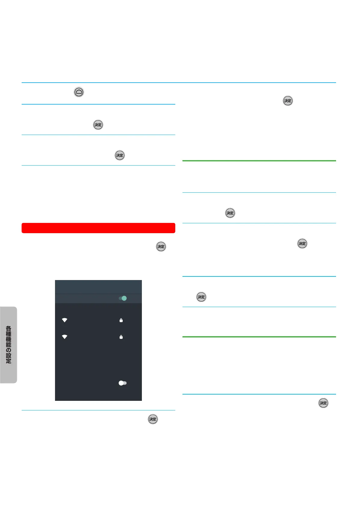 ▲.·.▼.を押して、「Wi-Fi」を選び、 を