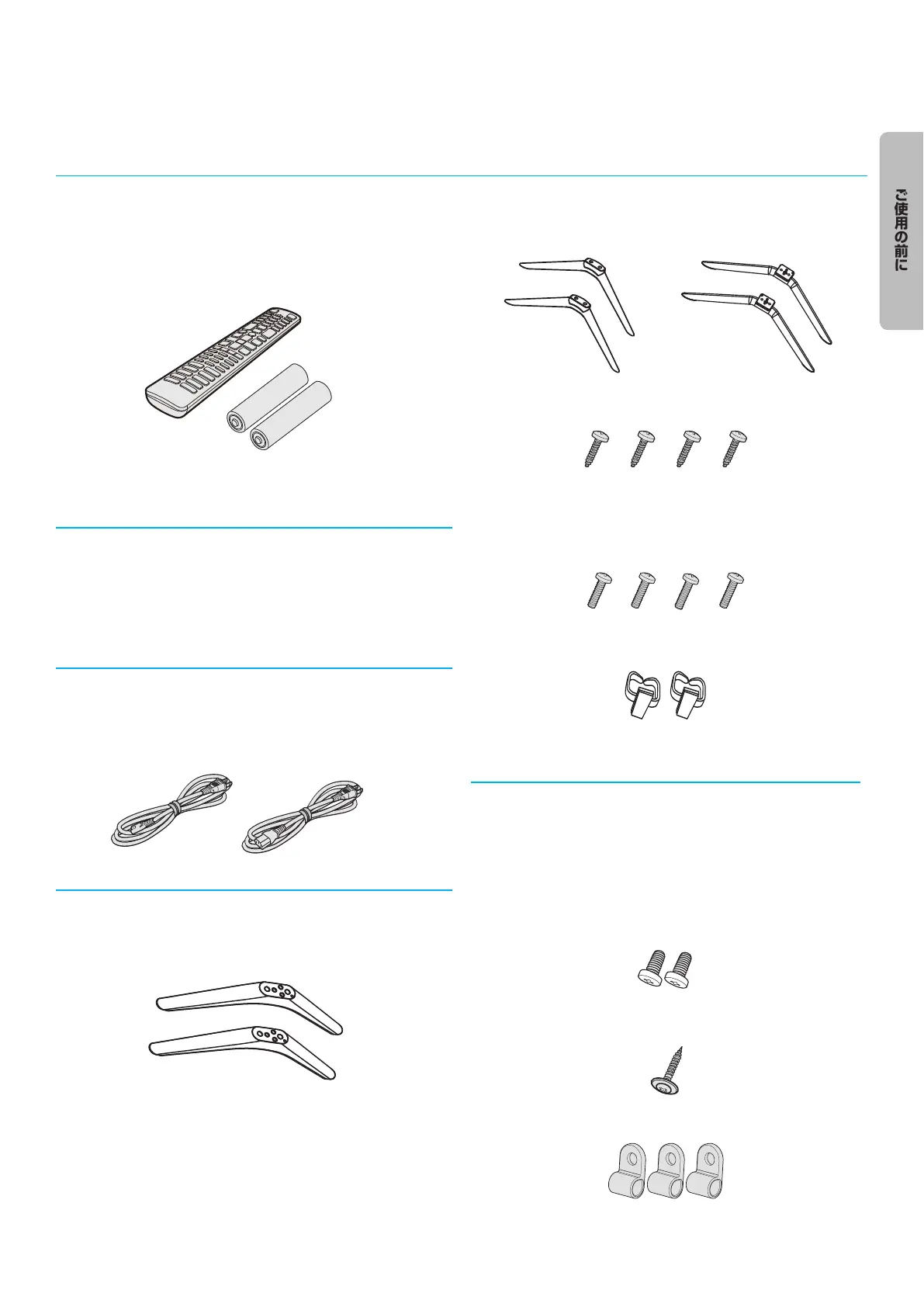 ●● 外部機器接続用のケーブル類およびアンテナ信号接続ケーブル類は含まれていません。別途ご購入してください。