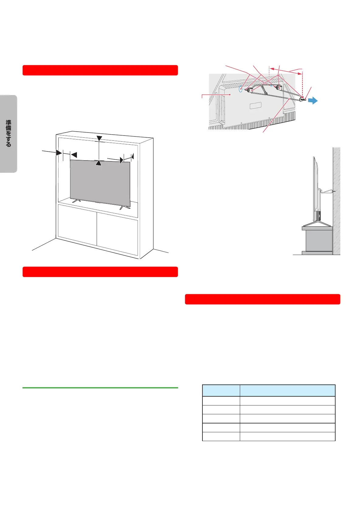 ●● テレビを設置する前に、設置面がテレビの重さに耐えるこ
