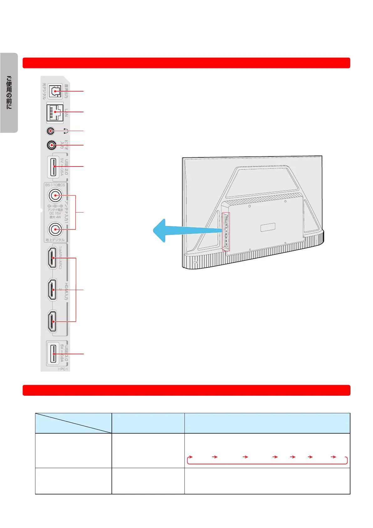 ●● リモコンの電池が消耗している場合は、テレビのボタンを使用できます。●以下の機能があります。