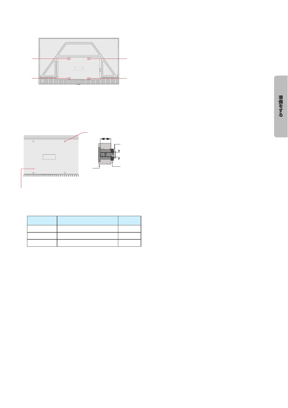 ●● 壁掛け用ネジの実際の長さは、壁掛け金具の厚さにより変