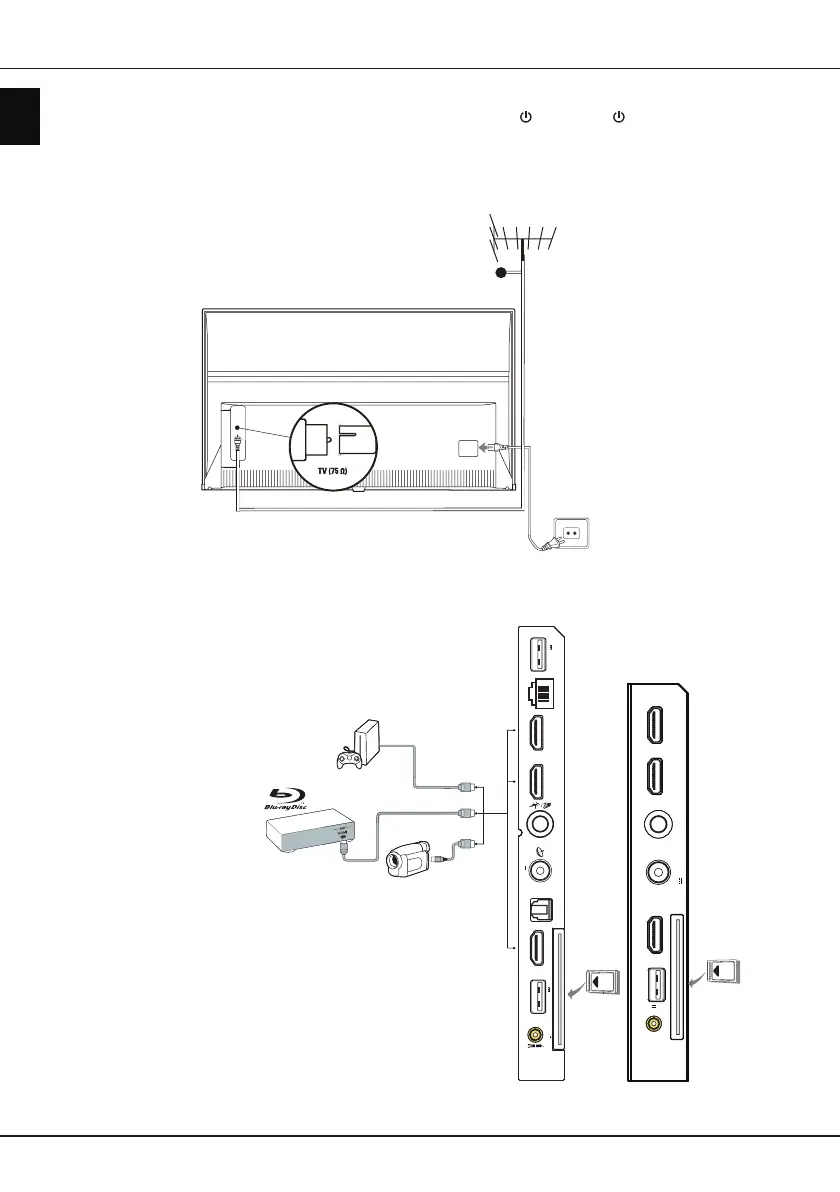 Om na het aansluiten van het netsnoer de TV in te schakelen, druk op of