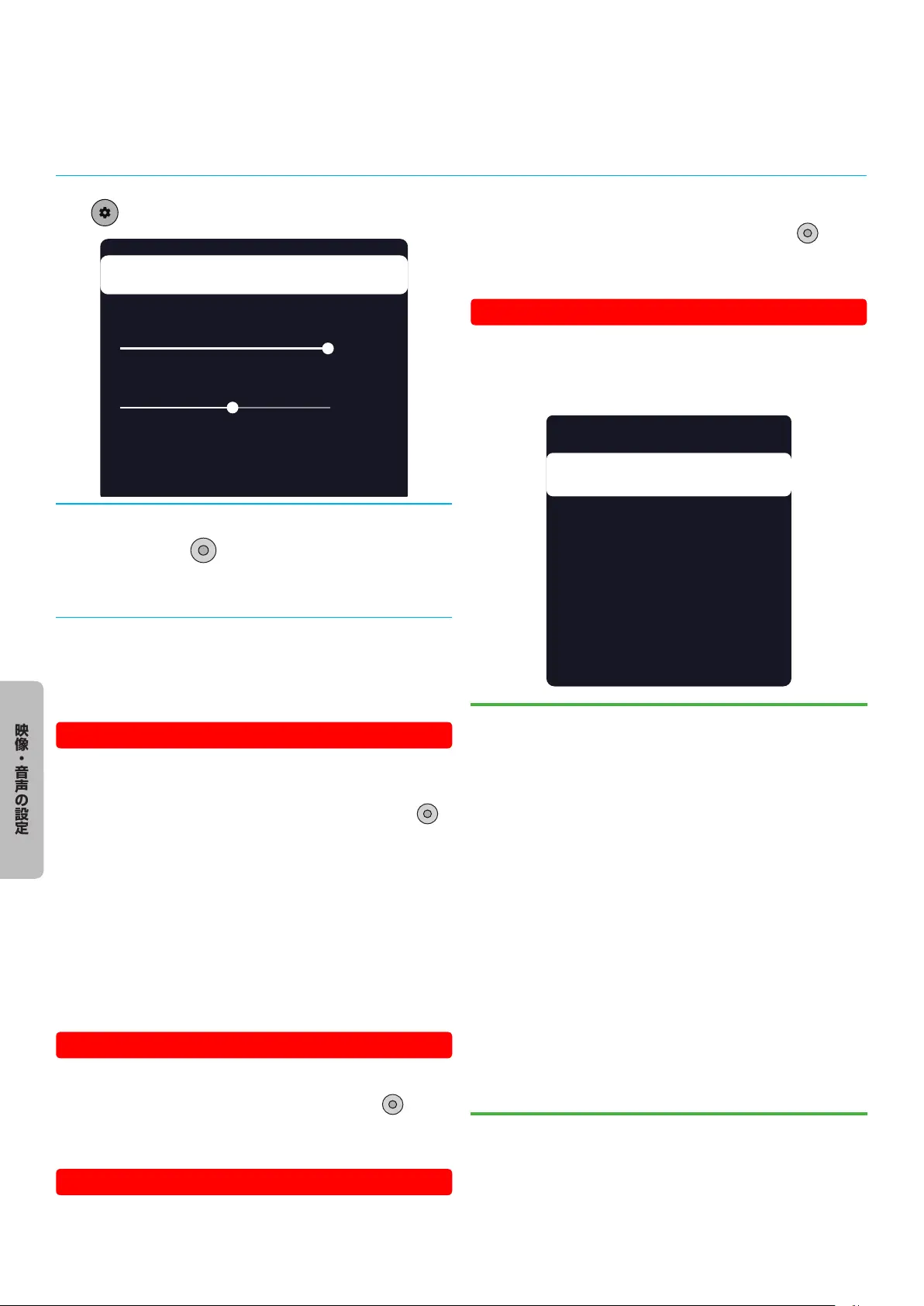 ●● 映像設定メニューは、あなたの好みやあなたが見ている番組の種類に応じて最適な画像設定を得るために使われます。