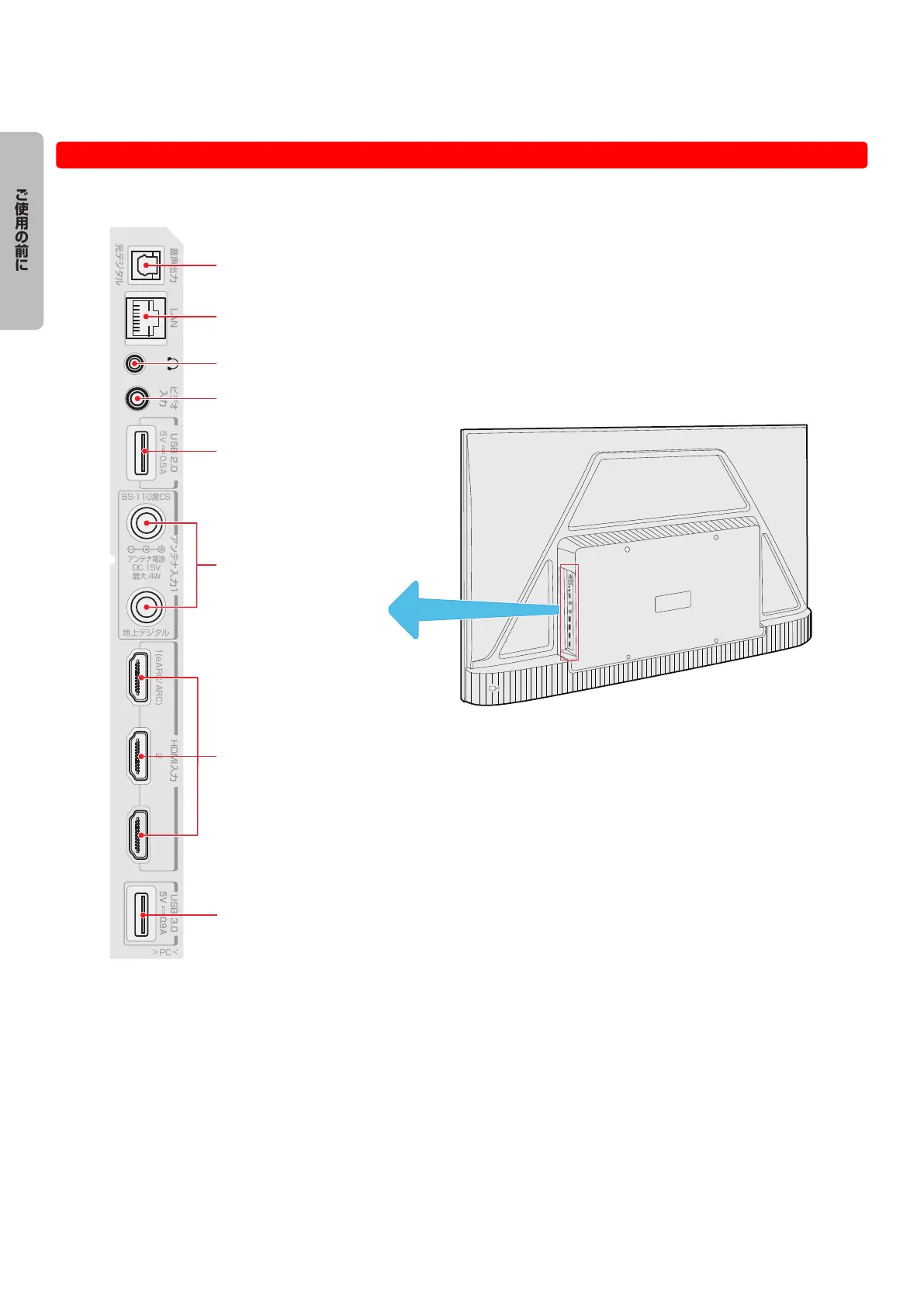 ●● 下図の入出力端子イラストは 50/55/65 型の場合です。