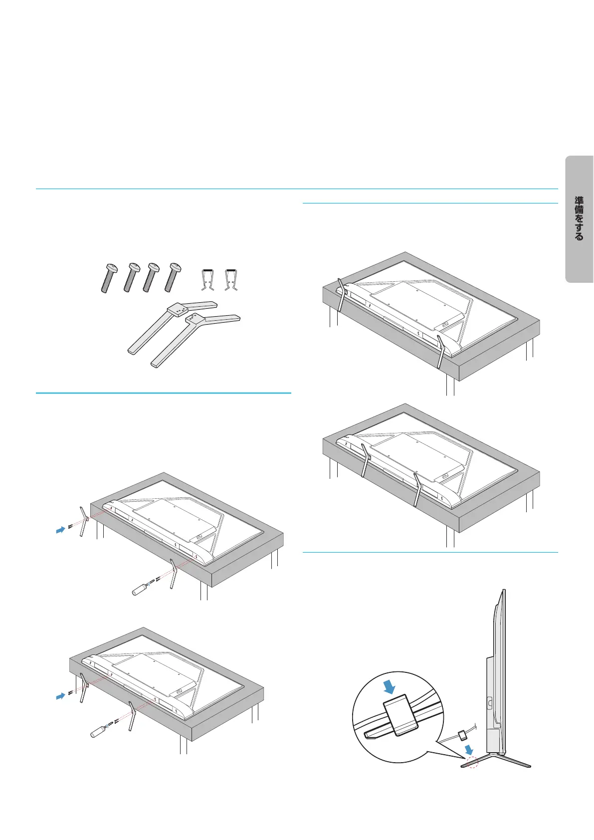 ●● 組立中に画面に傷がつかないよう、画面の下に軟らかい布などを置くようにしてください。