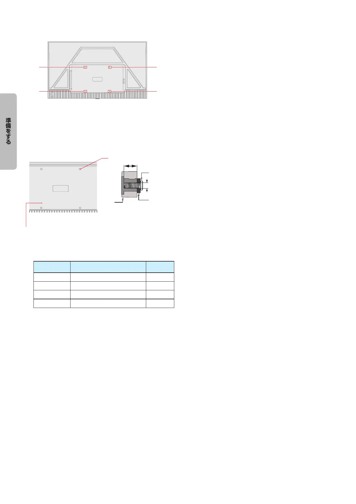 ●● 壁掛け用ネジの実際の長さは、壁掛け金具の厚さにより変
