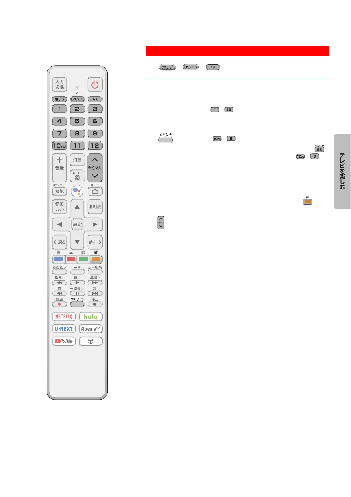 を選択します , あるい3桁のチャンネル番号で選局する場合は、 を