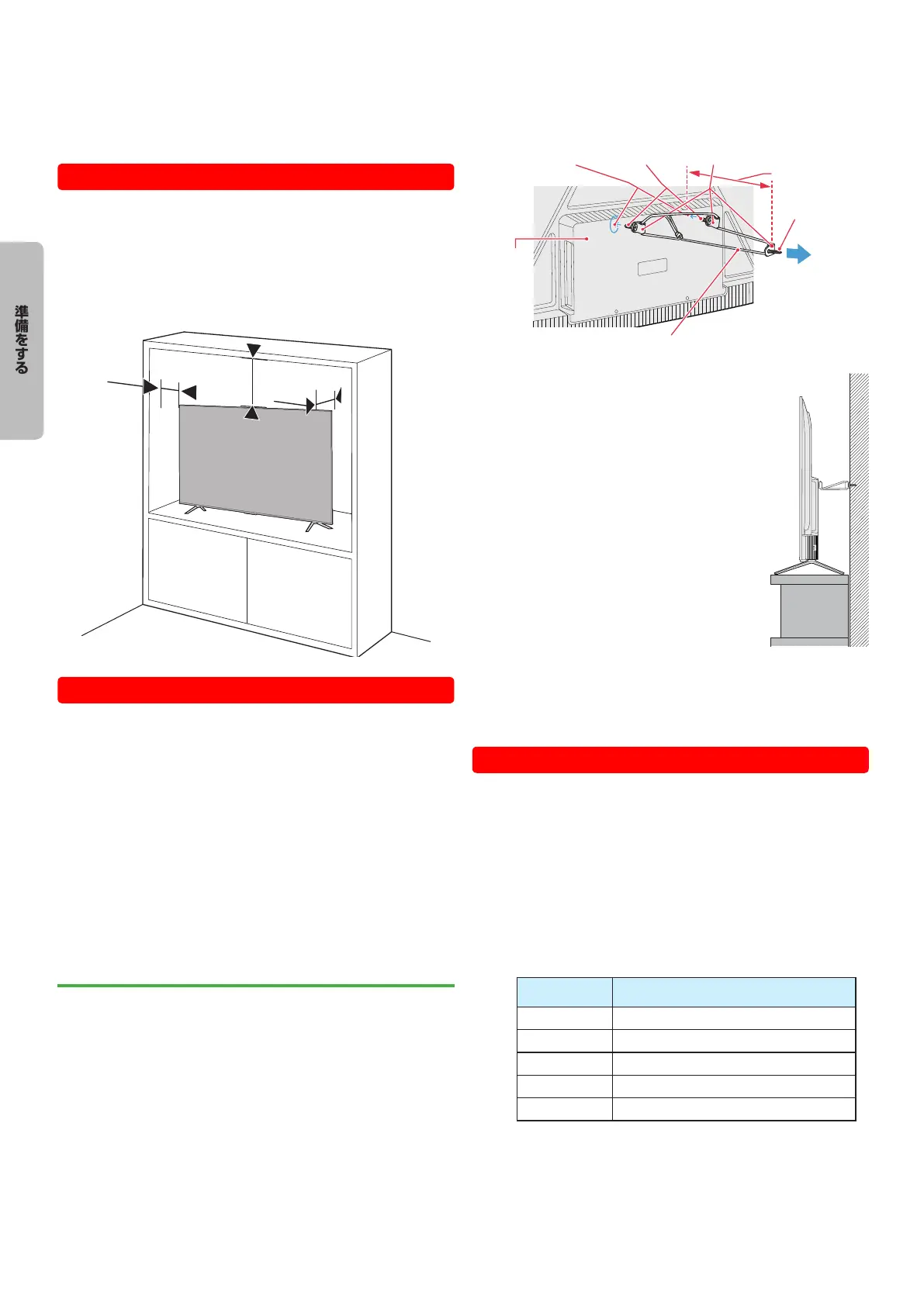 ●● テレビを設置する前に、設置面がテレビの重さに耐えるこ