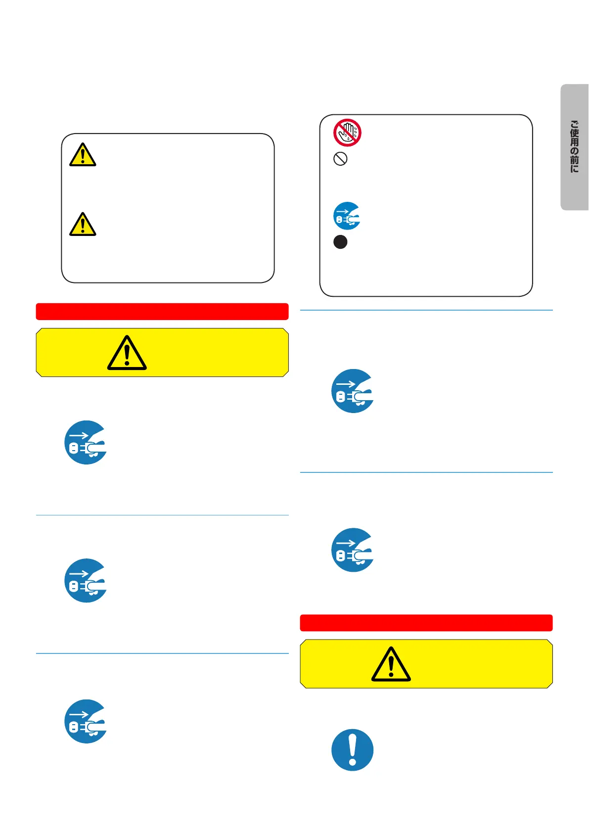 上の記号はプラグを抜く操作が必要なこ