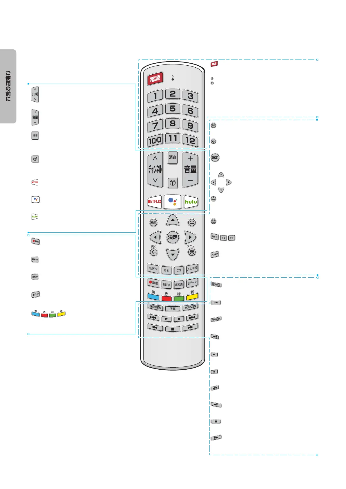 ●● リモコンは、テレビに附属の専用リモコンのみを使用してください。●専用リモコン以外では、外観が類似していたとしても、
