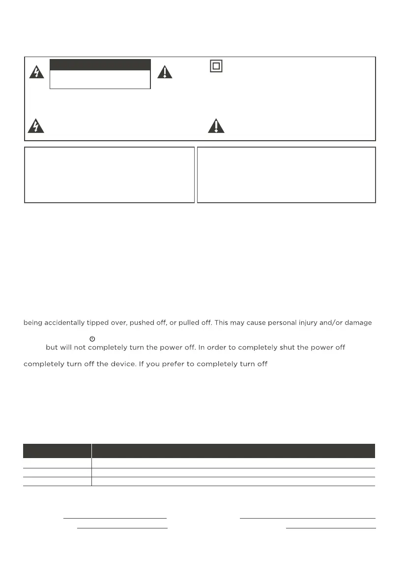Make sure the TV stand or base you use is of adequate size and strength to prevent the TV from
