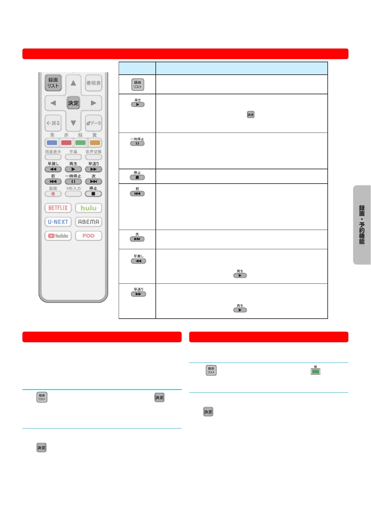 再生中またはテレビ番組の視聴中に押すと、録画リストが