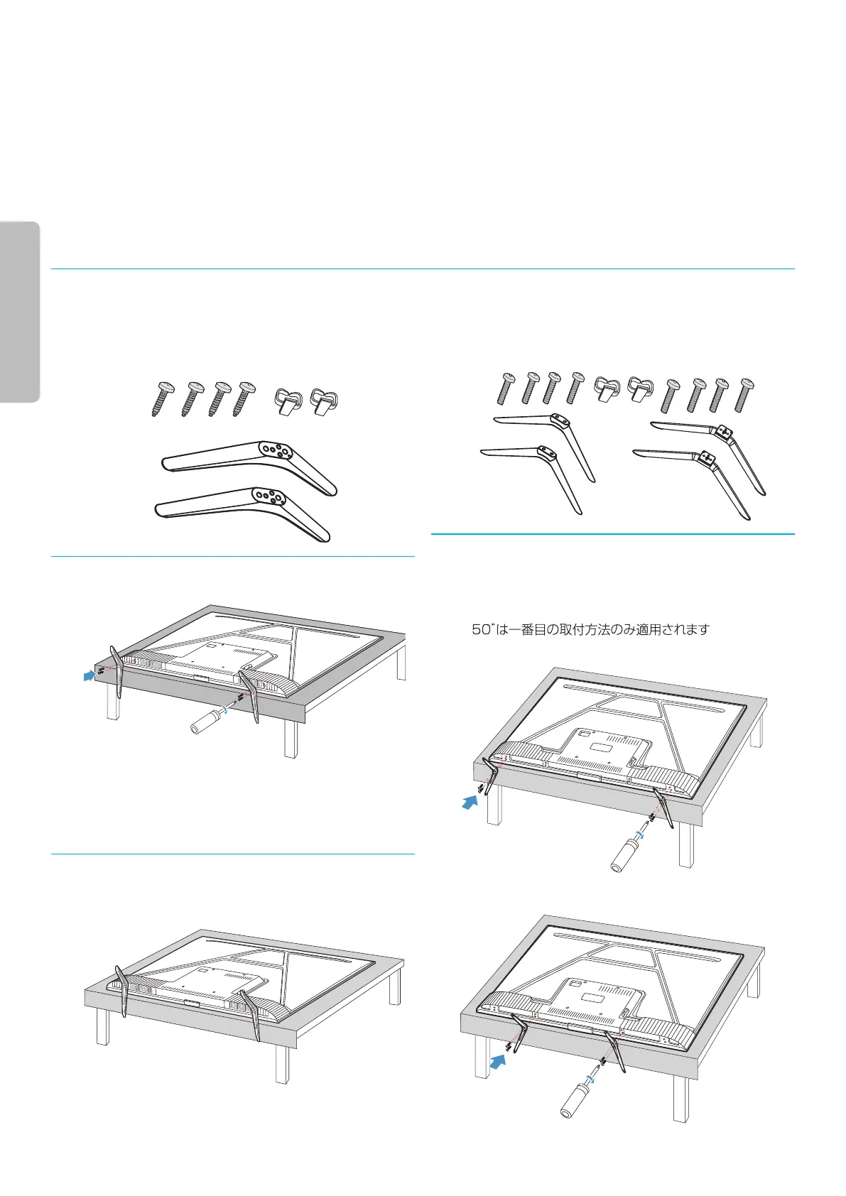 スタンド用組み立て部品を確認する。(43 型)