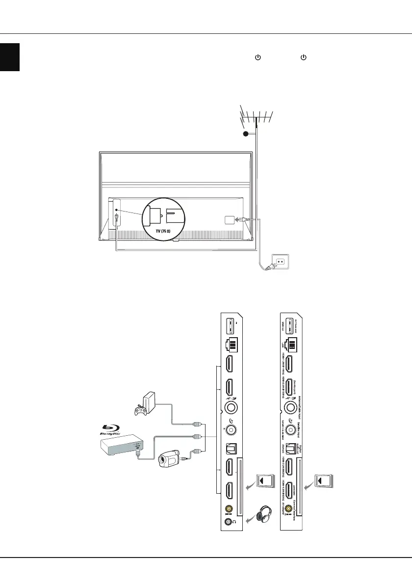 Om na het aansluiten van het netsnoer de TV in te schakelen, druk op of