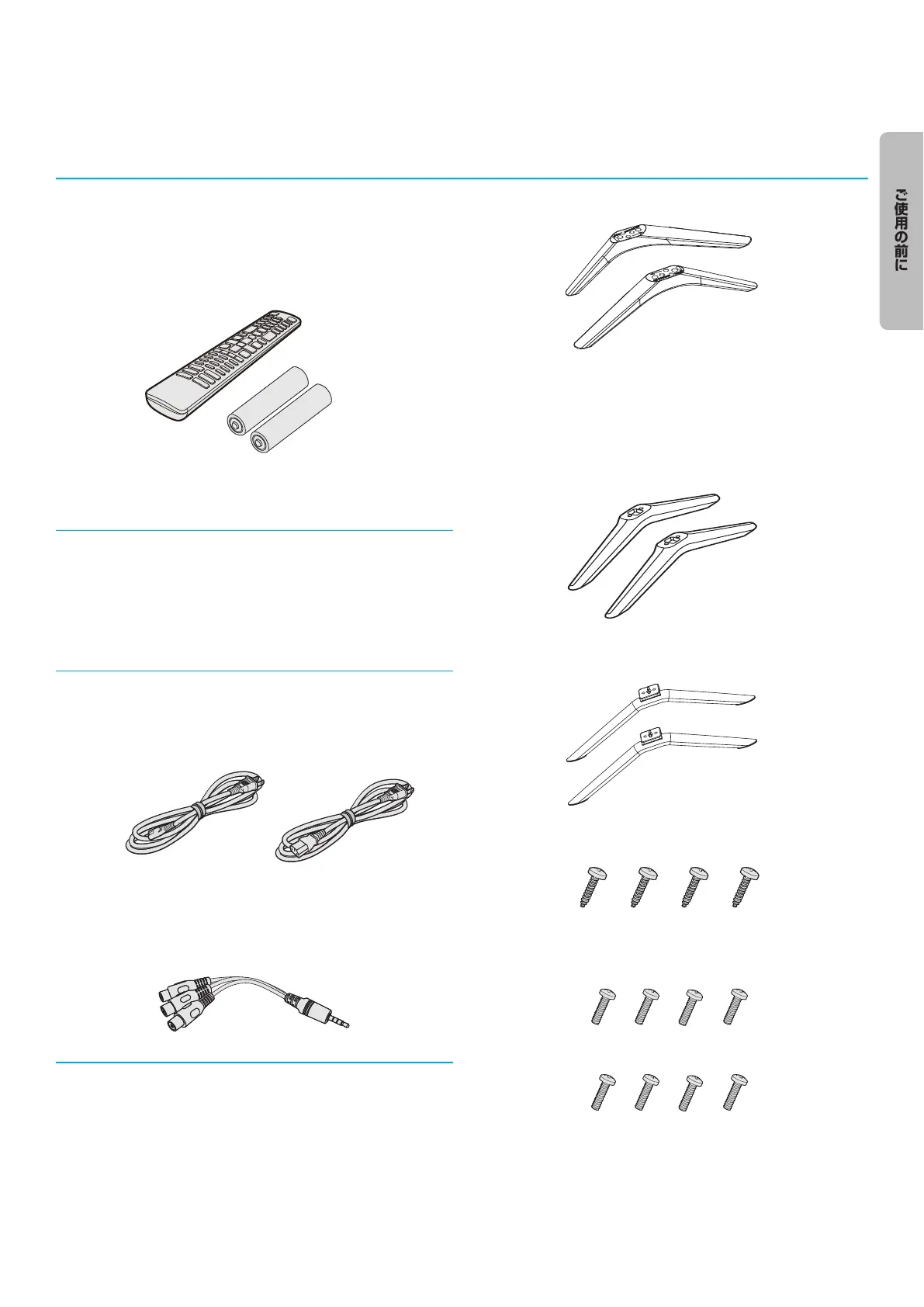 ●● 外部機器接続用のケーブル類およびアンテナ信号接続ケーブル類は含まれていません。別途ご購入してください。