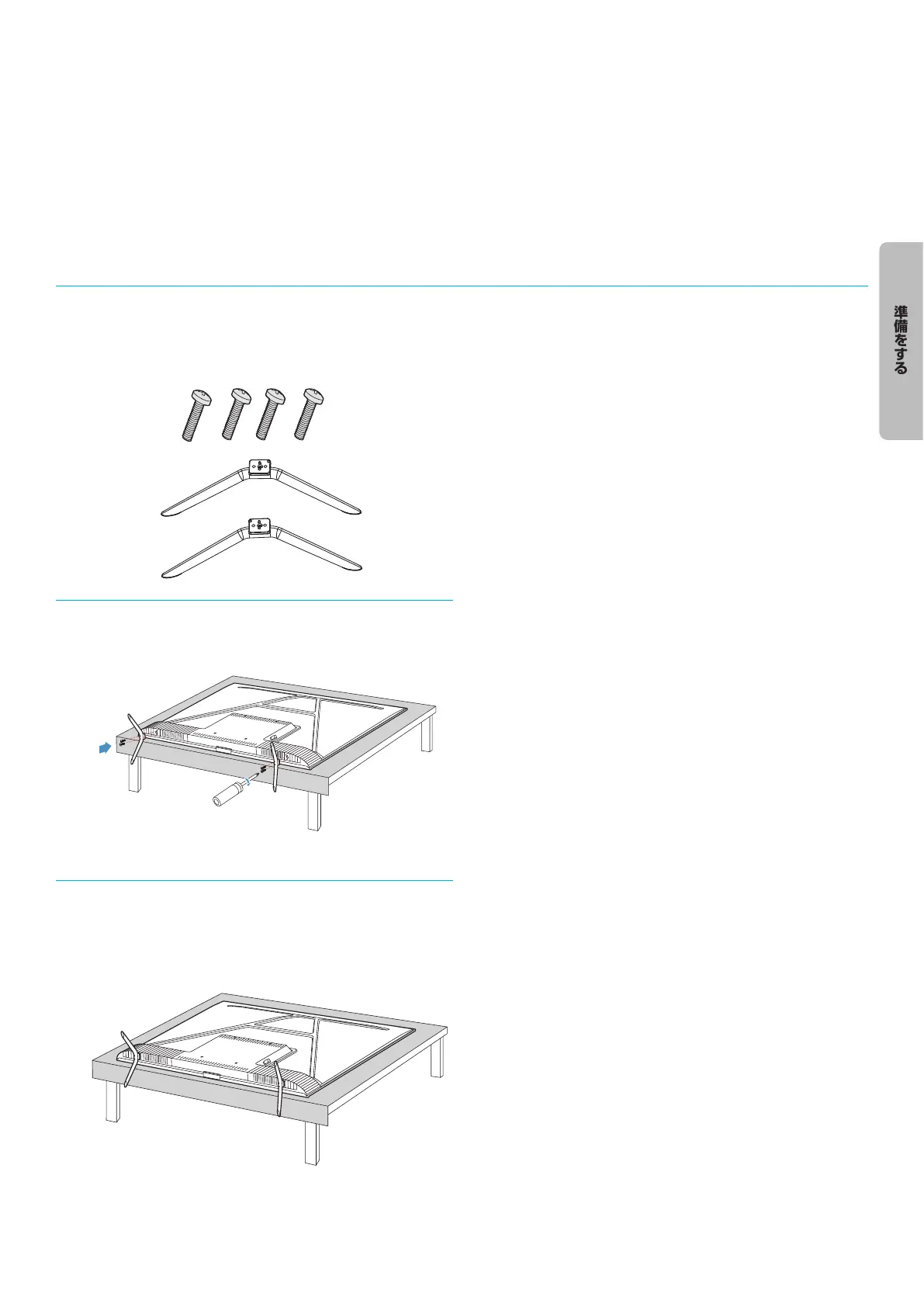 ●● 組立中に画面に傷がつかないよう、画面の下に軟らかい布などを置くようにしてください。
