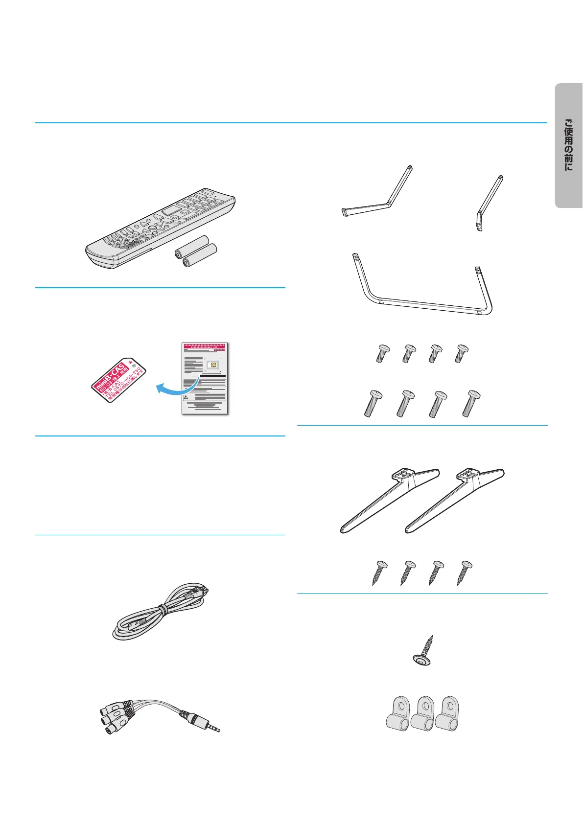 ●● 開始する前に、本機に以下の付属品が含まれているか確認してください。足りないものがあった場合、ご購入店に問い合わせてくだ