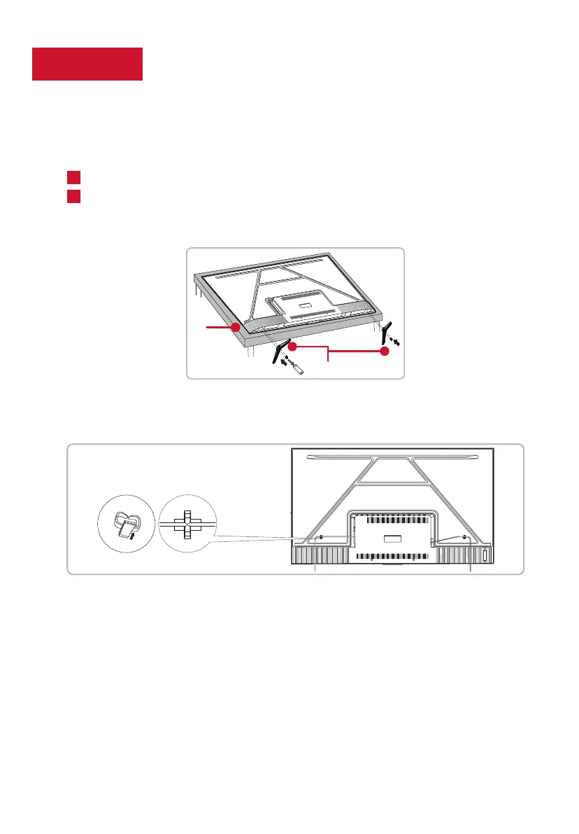 Stick the two cable clips to the back of the TV and route the cables as illustrated.