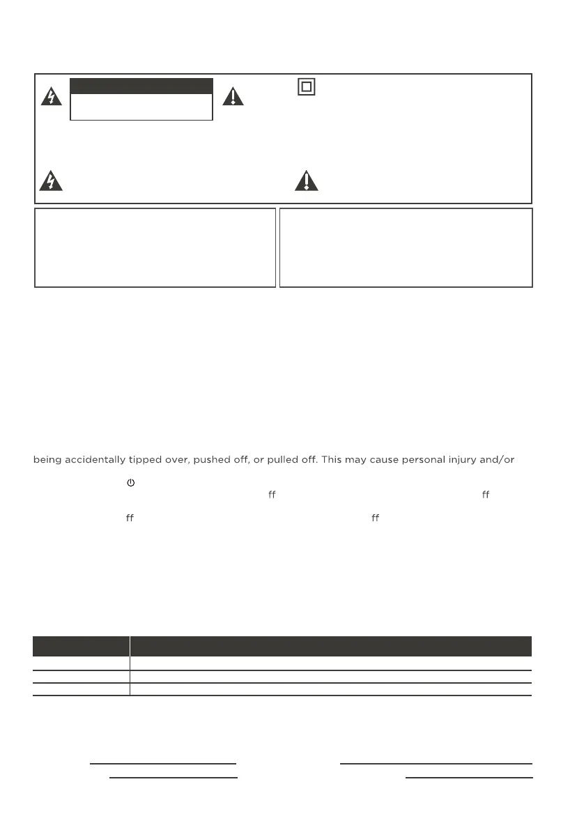Make sure the TV stand or base you use is of adequate size and strength to prevent the TV from
